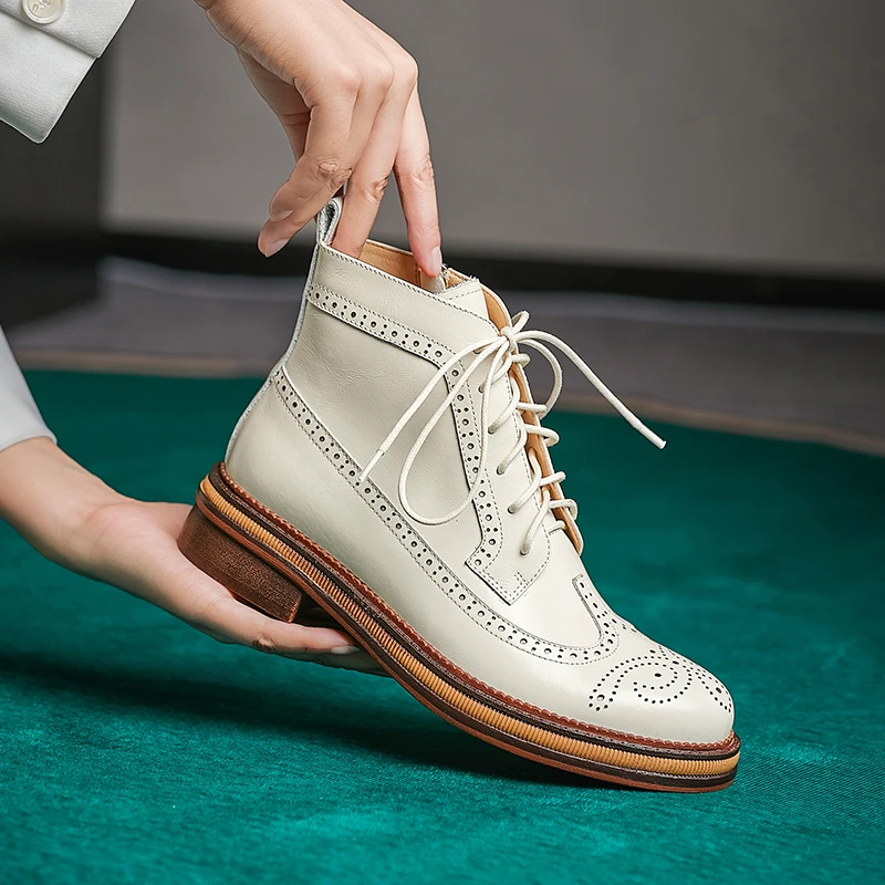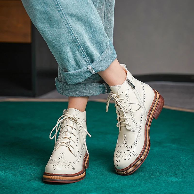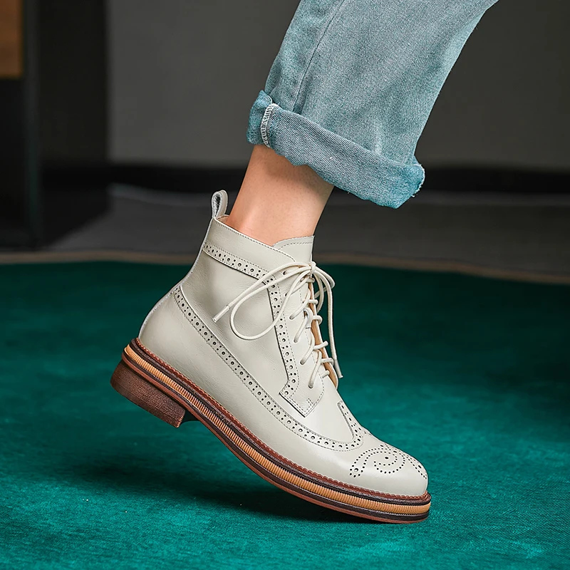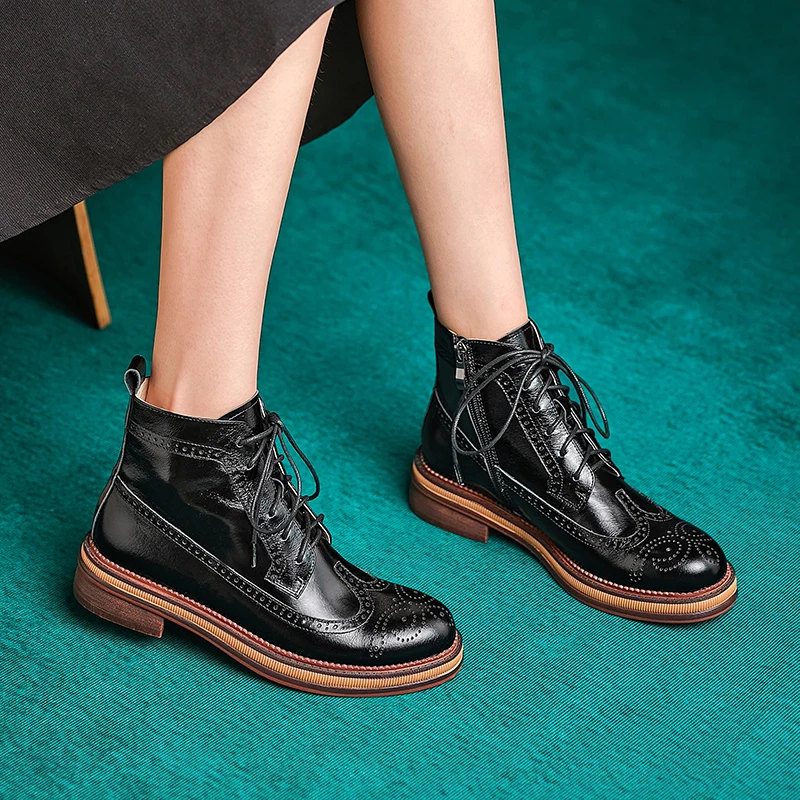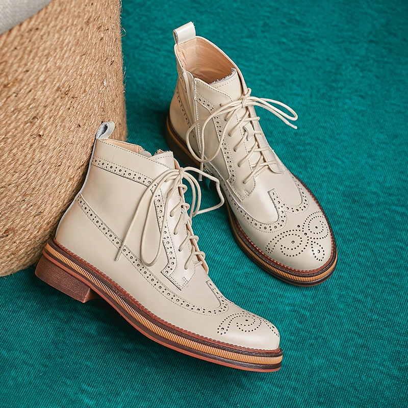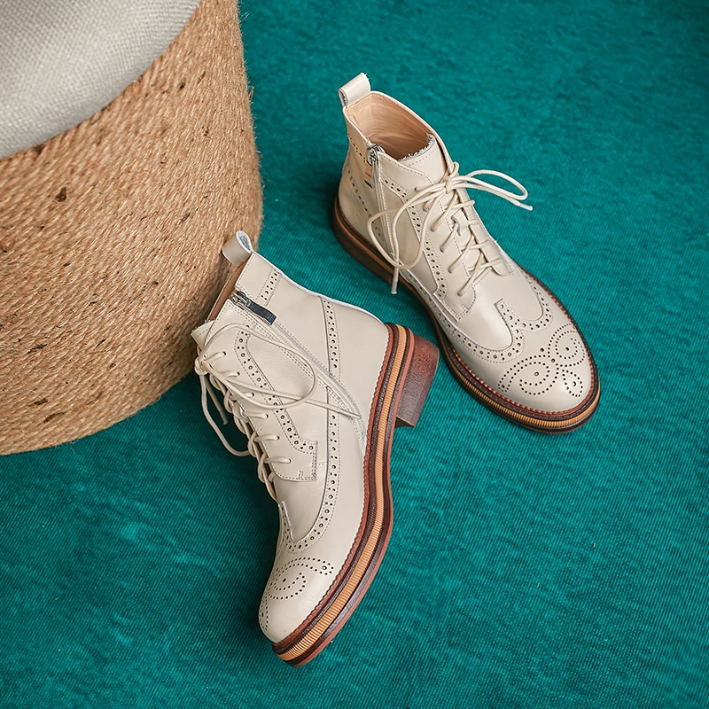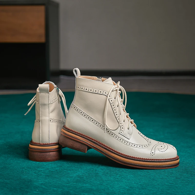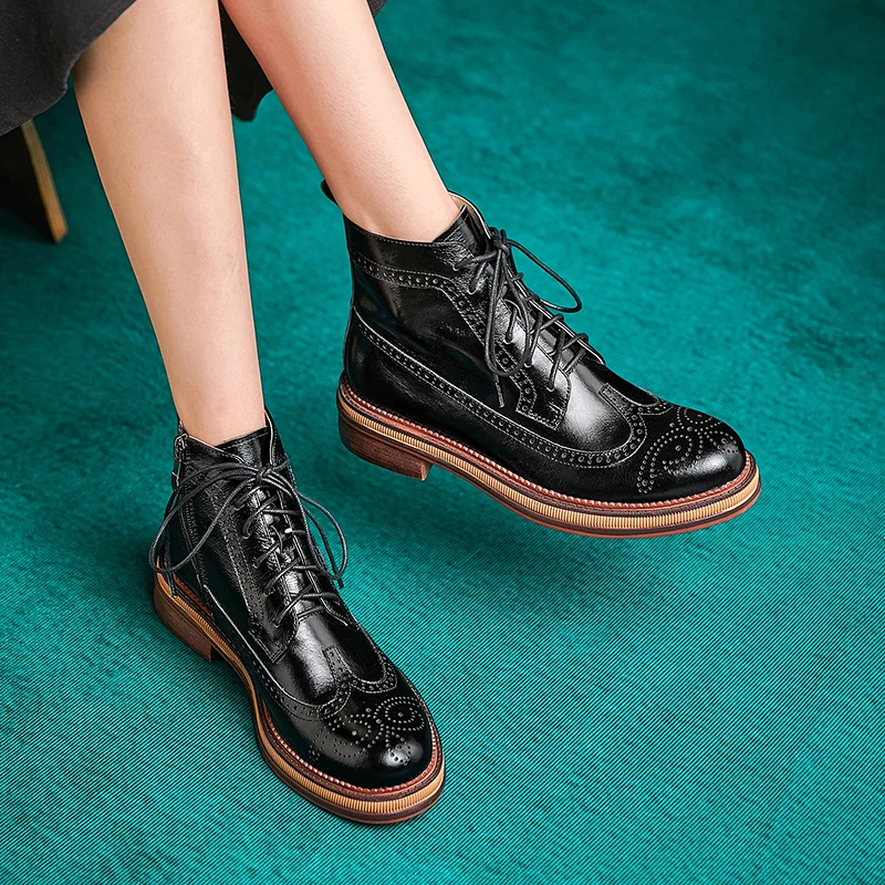 Women Boots Brogue Booties Classics Style Ladies Designer Shoes Lace-Up Boots for Women Genuine Leather Ankle Boots Botas