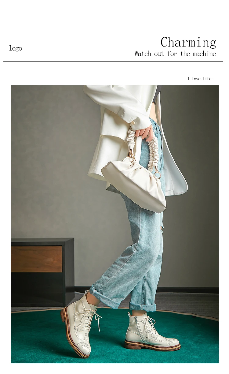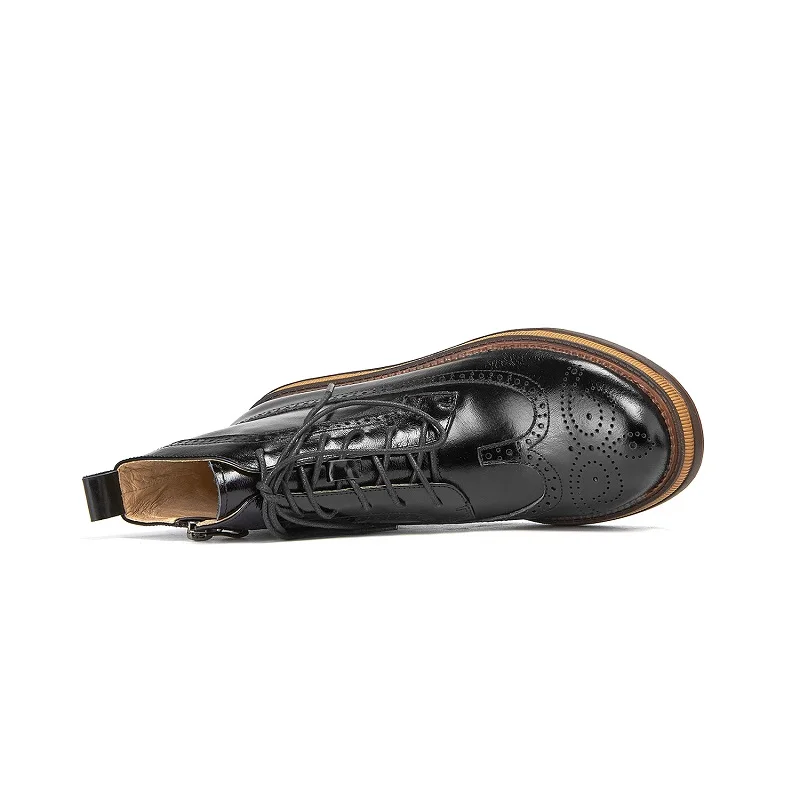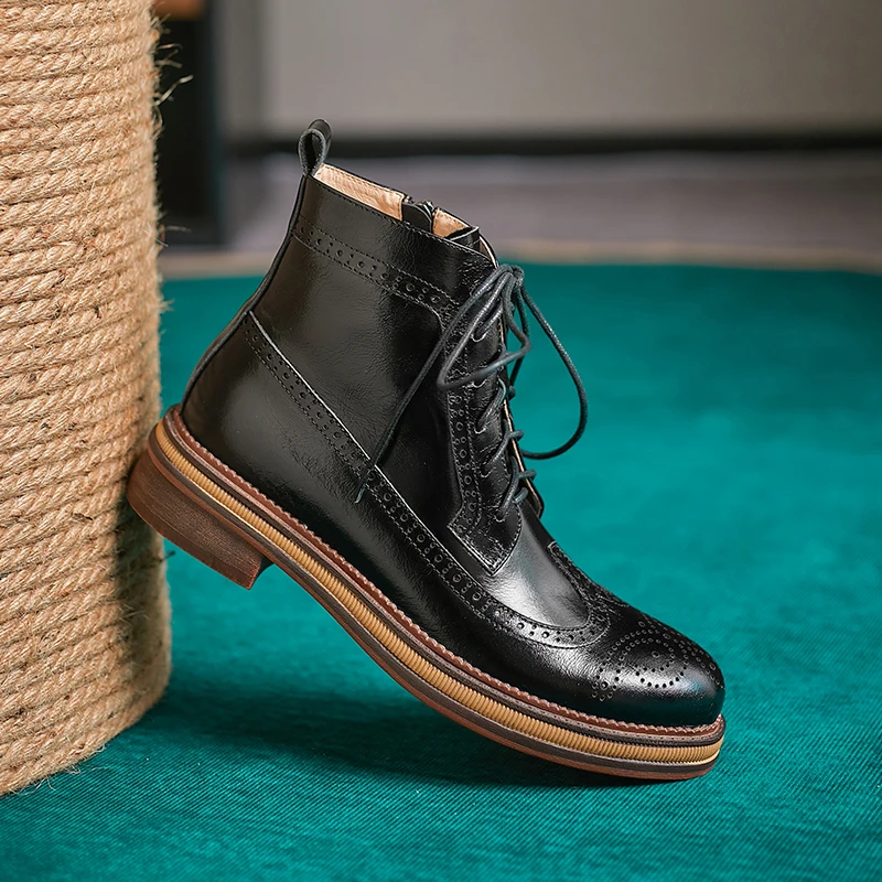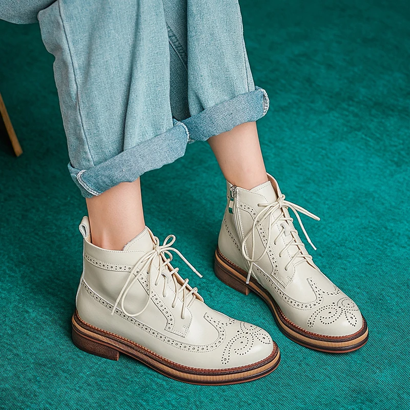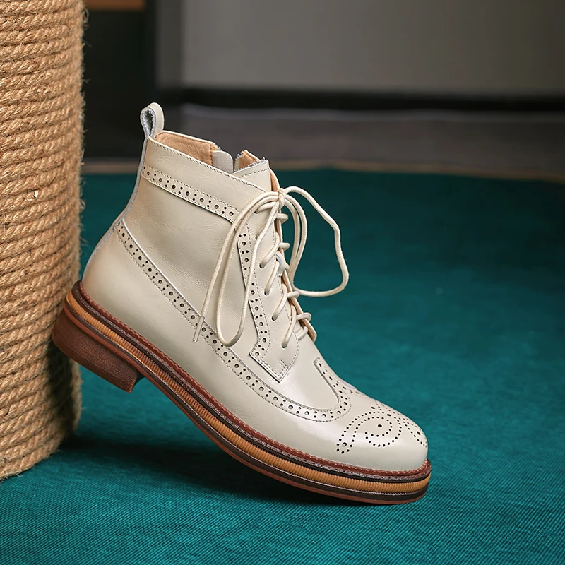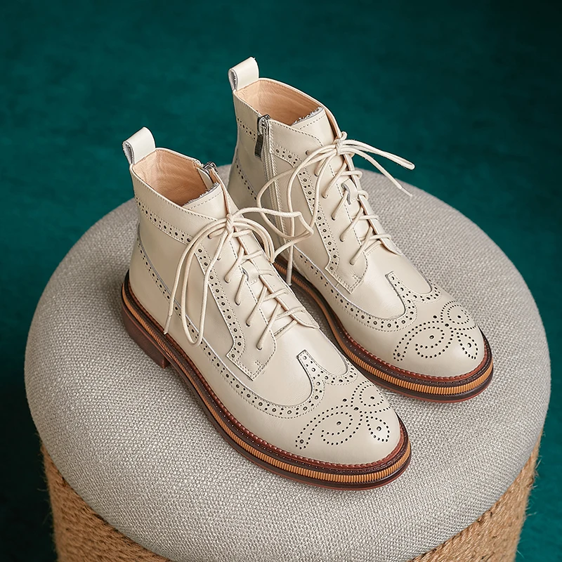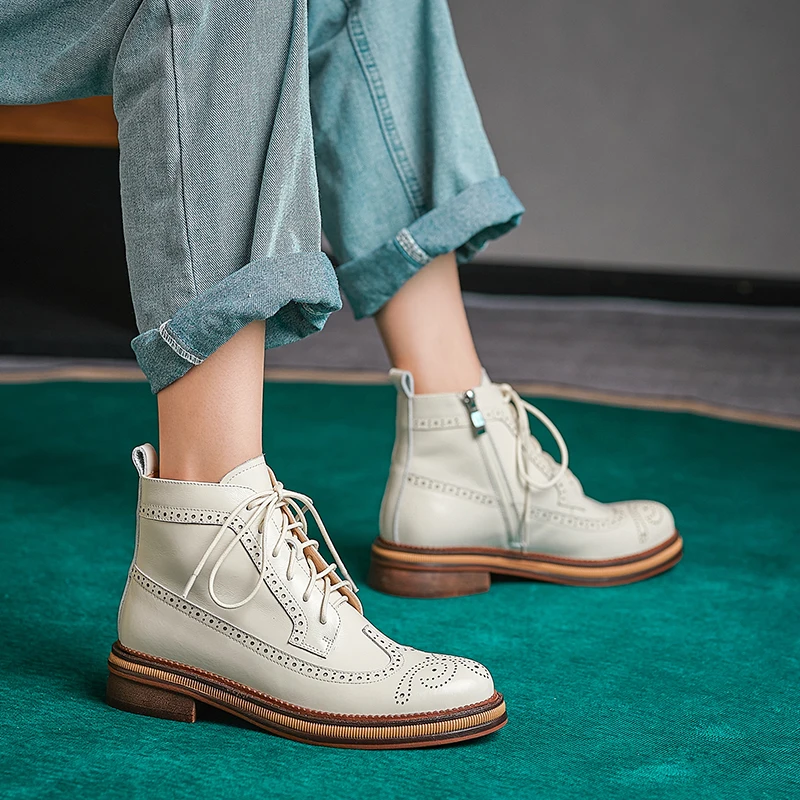 Women Boots Brogue Booties Classics Style Ladies Designer Shoes Lace-Up Boots for Women Genuine Leather Ankle Boots Botas