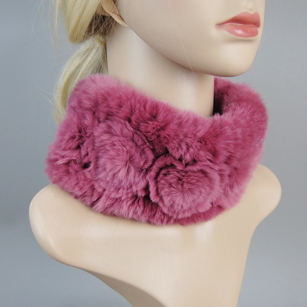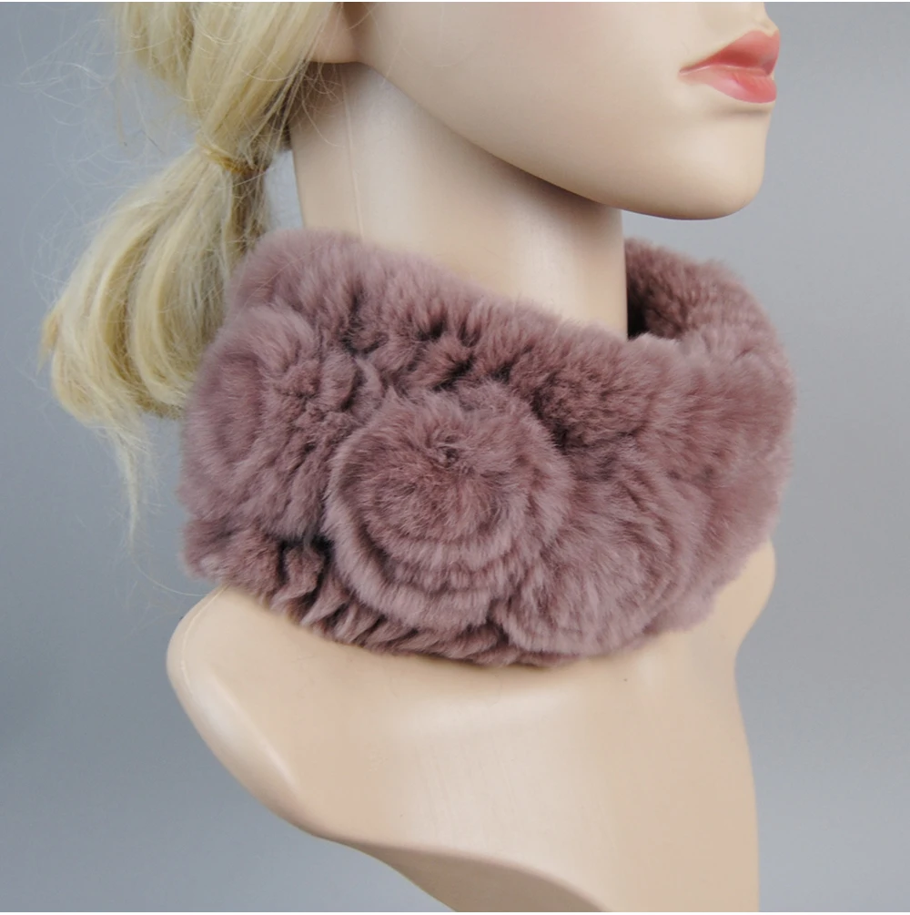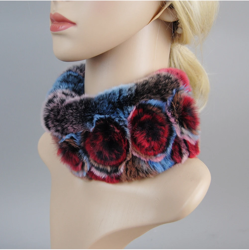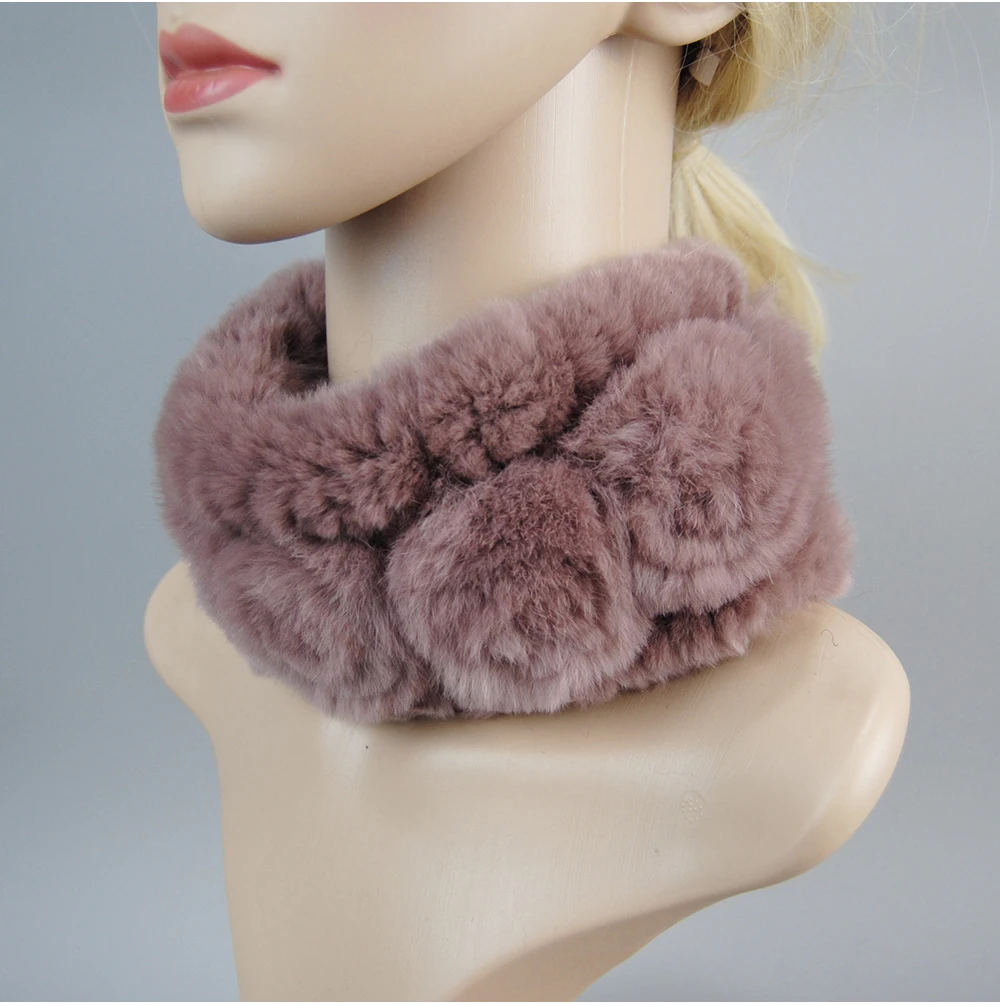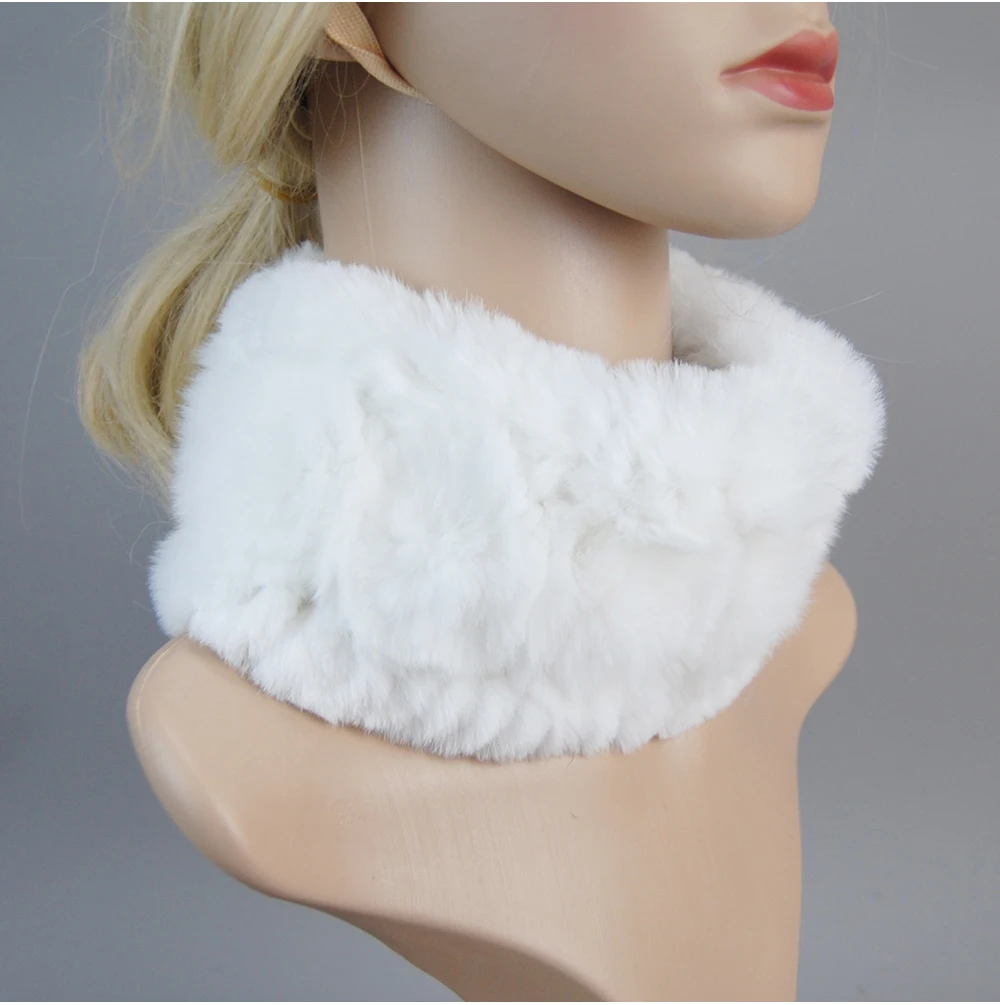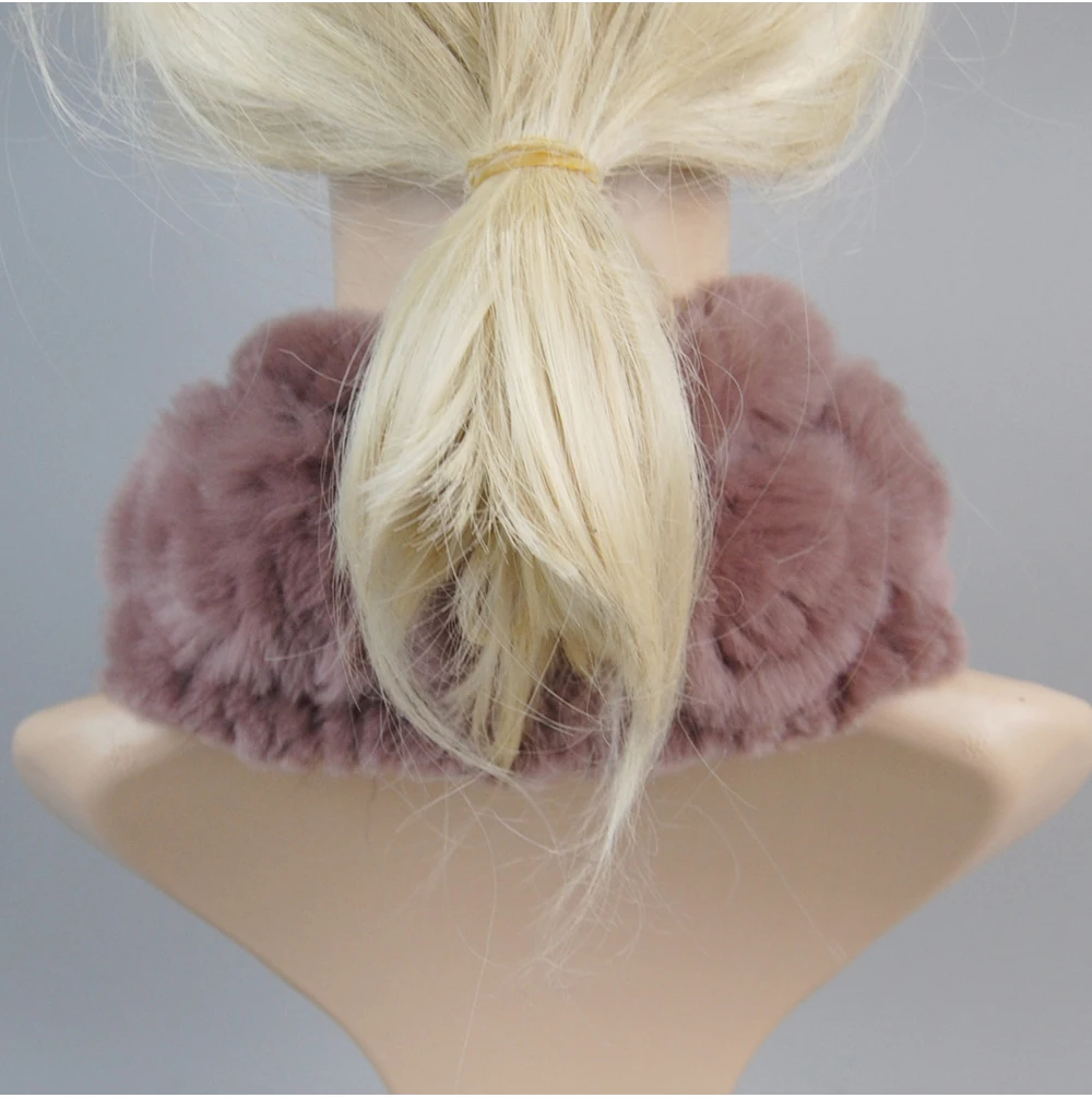 Women Handmade Stretch 100% Real Rabbit Fur Scarf Knit Genuine Rex Rabbit Fur Headbands Girls Natural Rabbit Fur Ring Scarves