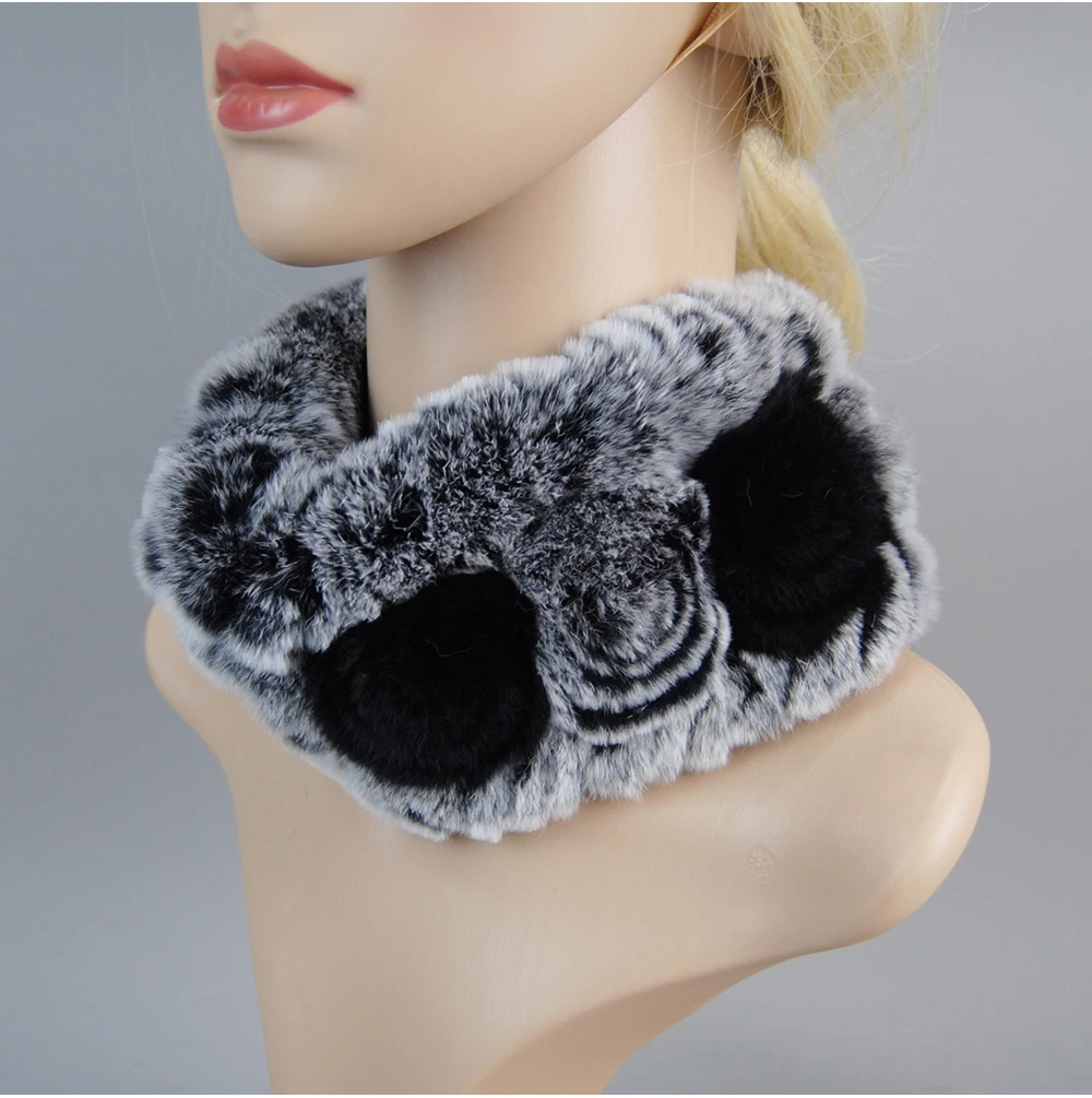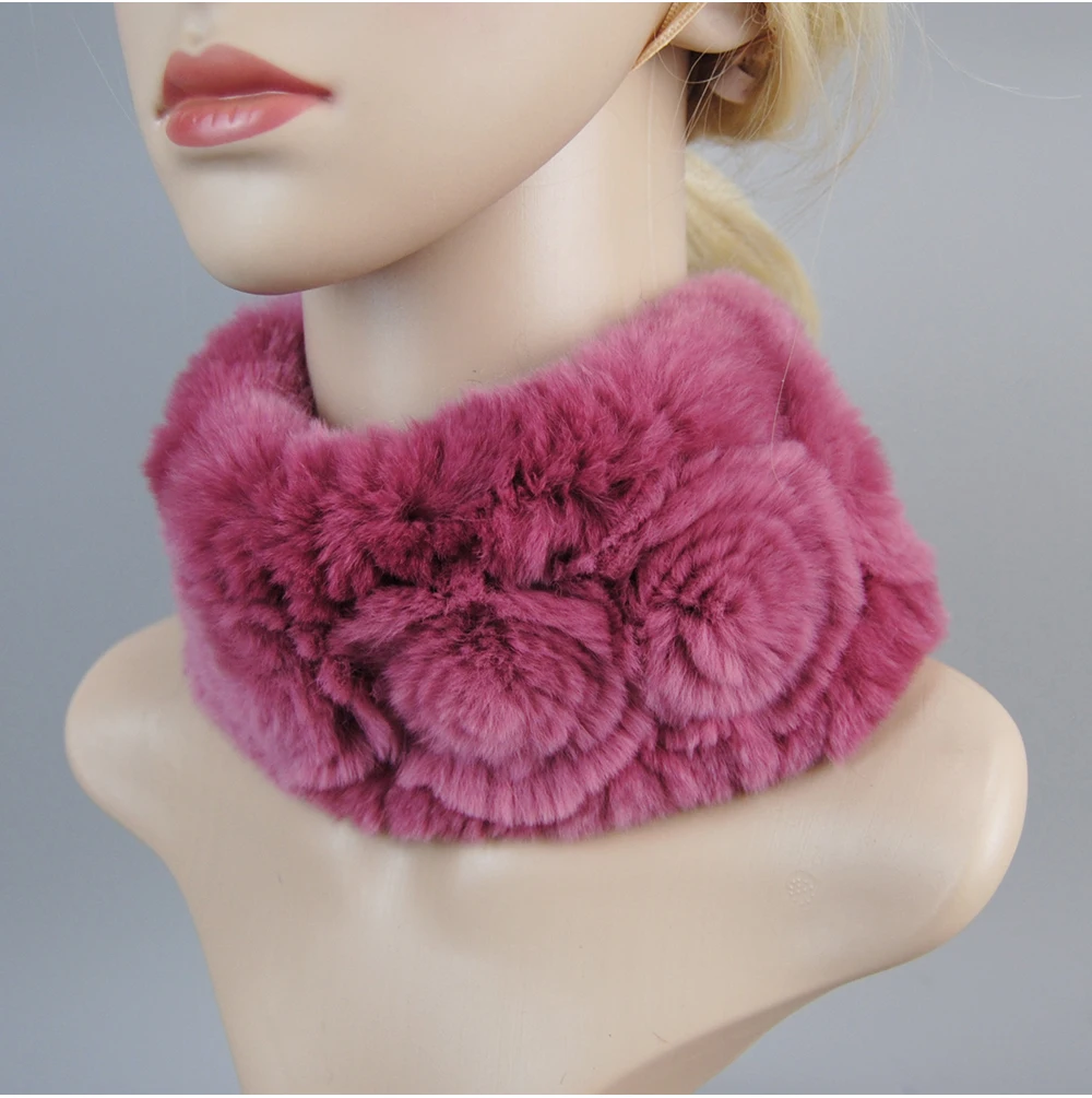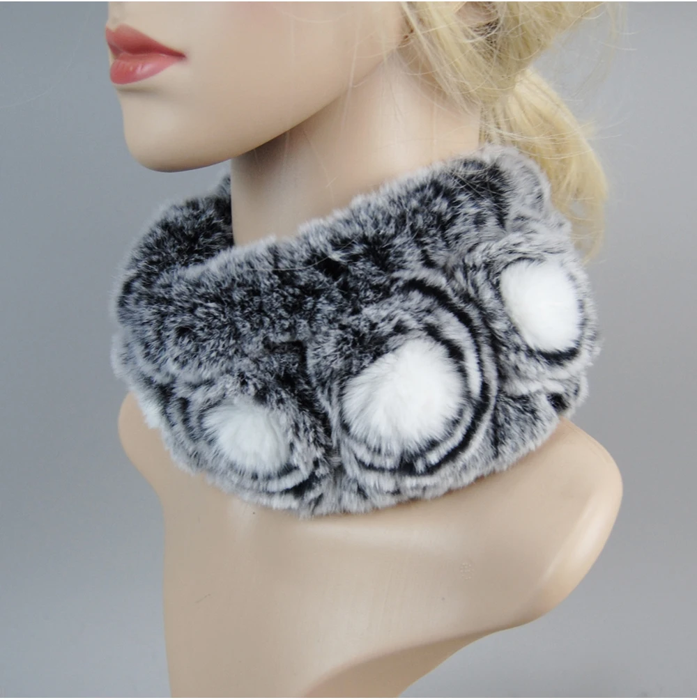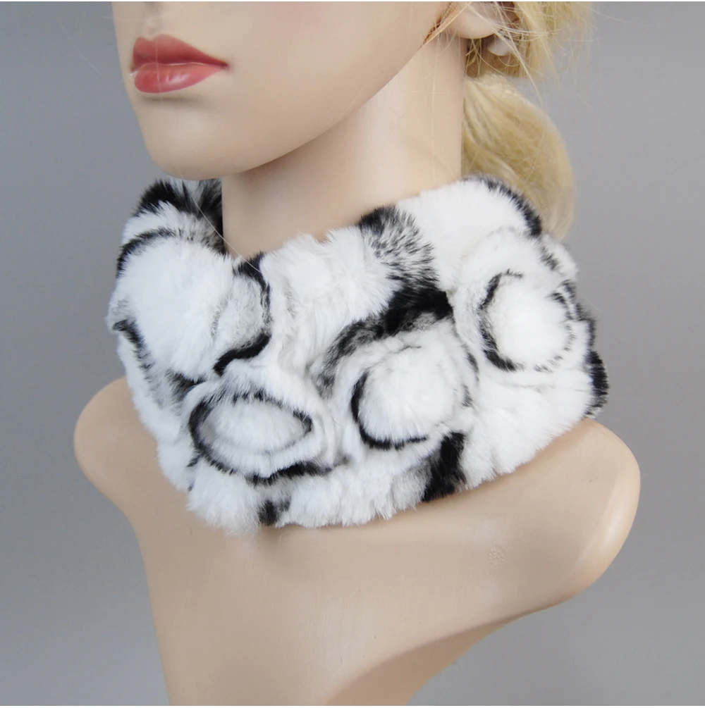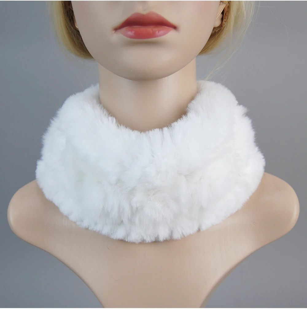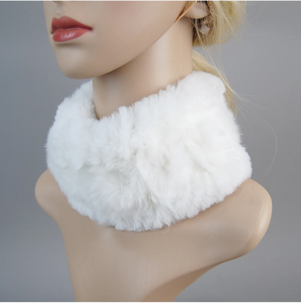 Women Handmade Stretch 100% Real Rabbit Fur Scarf Knit Genuine Rex Rabbit Fur Headbands Girls Natural Rabbit Fur Ring Scarves