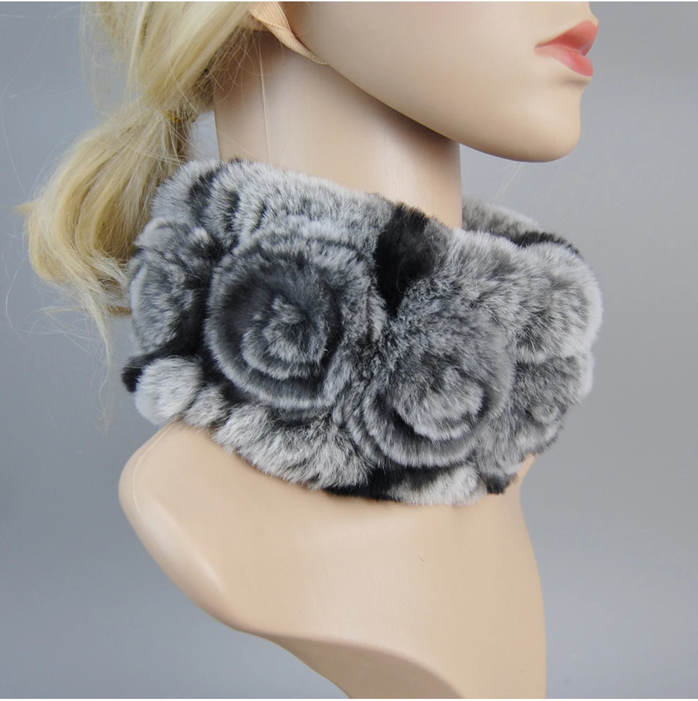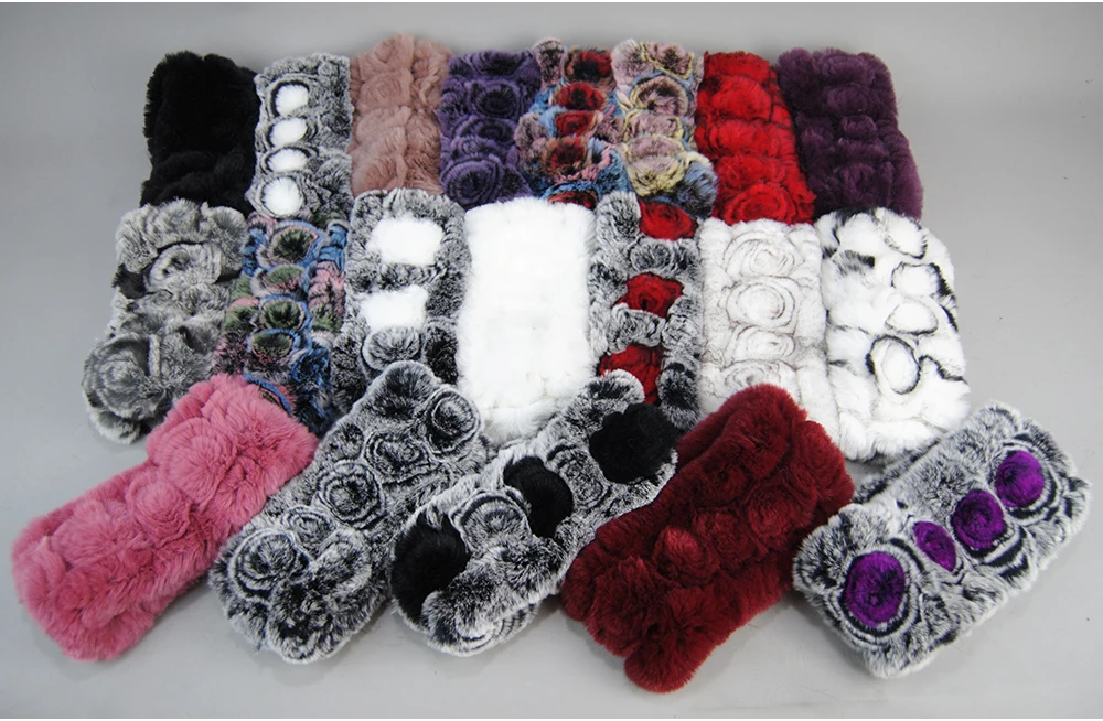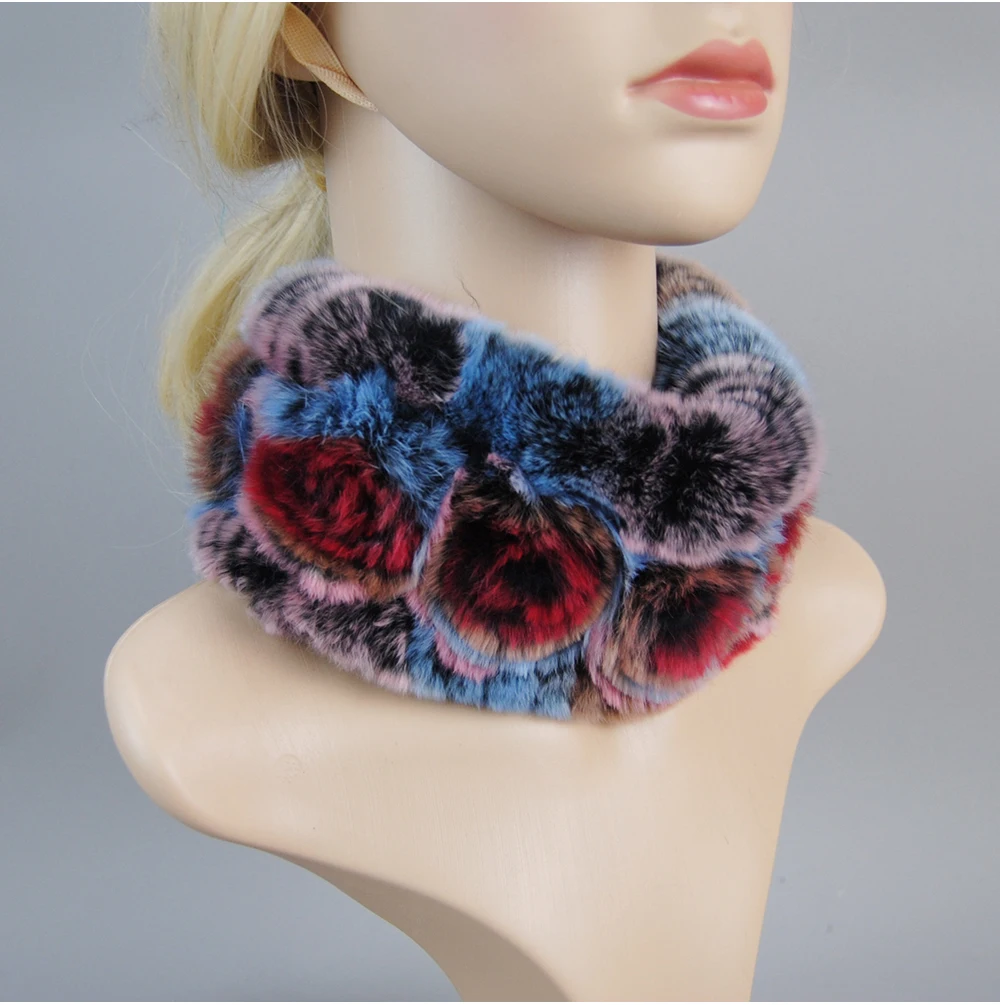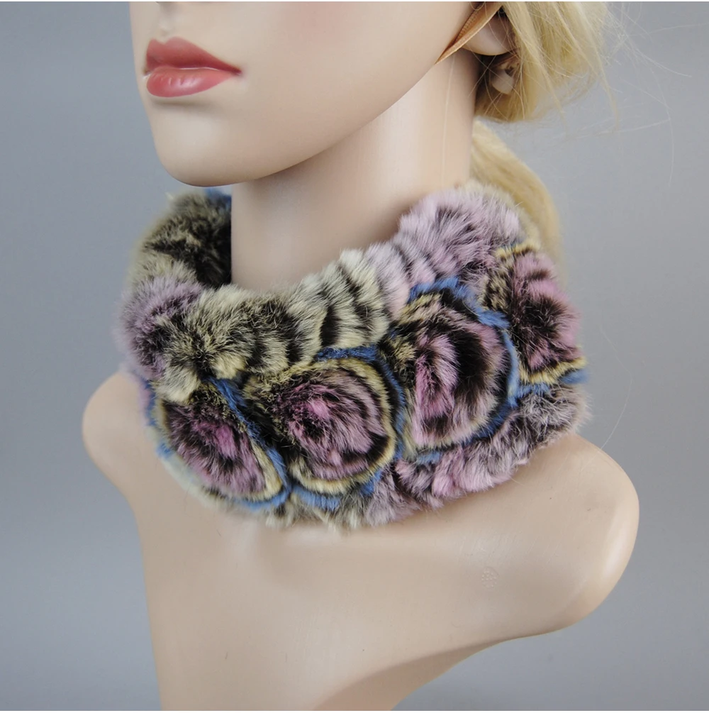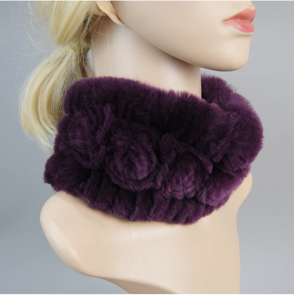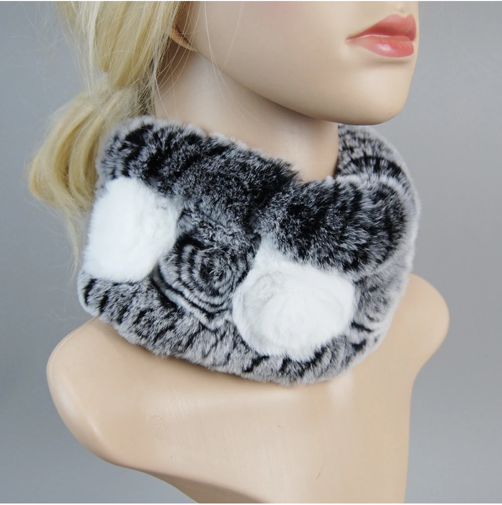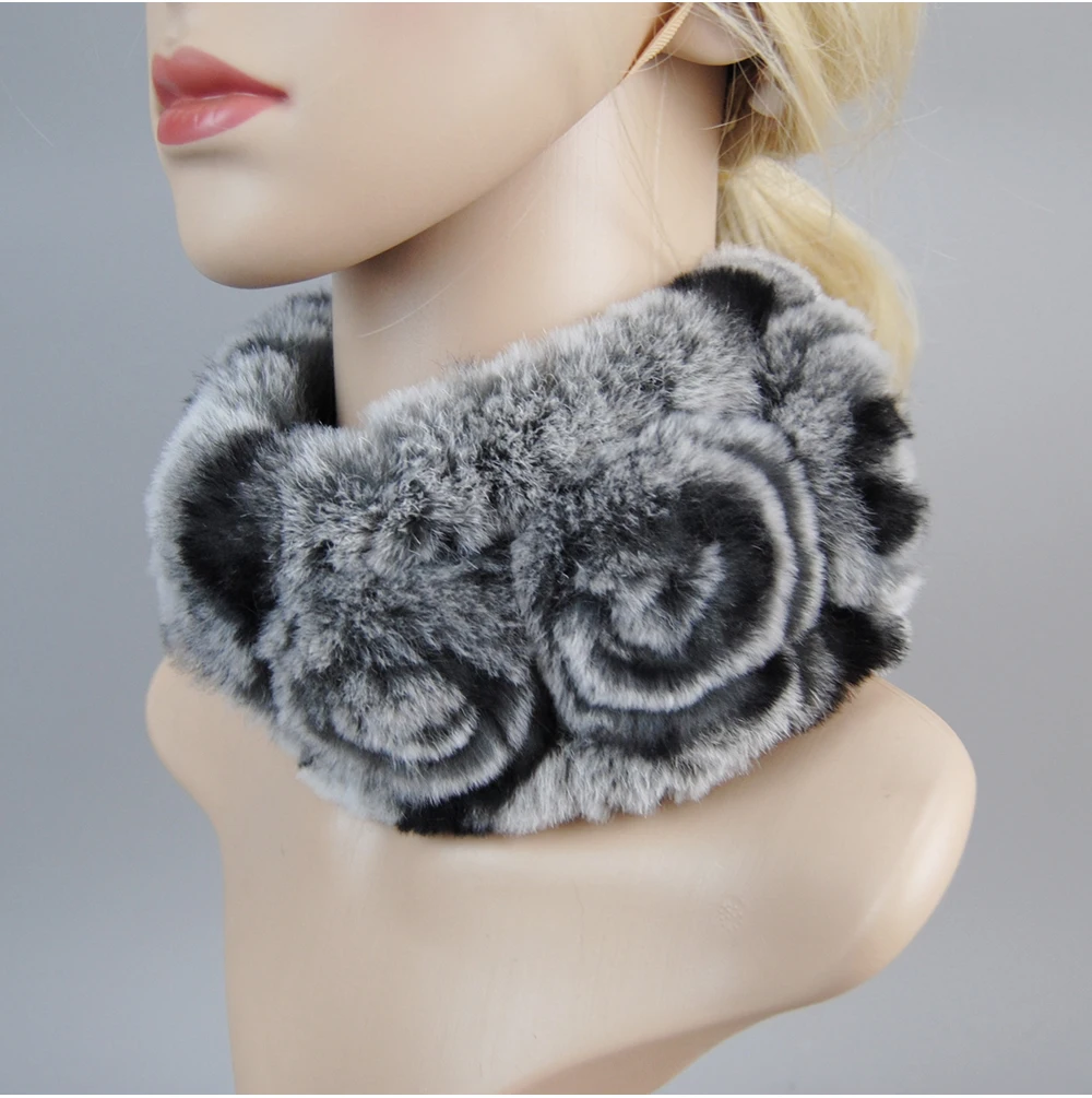 Women Handmade Stretch 100% Real Rabbit Fur Scarf Knit Genuine Rex Rabbit Fur Headbands Girls Natural Rabbit Fur Ring Scarves