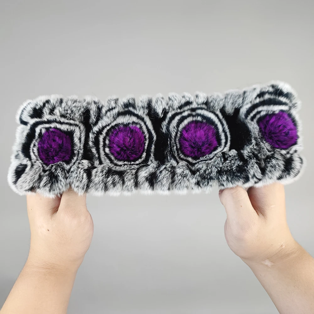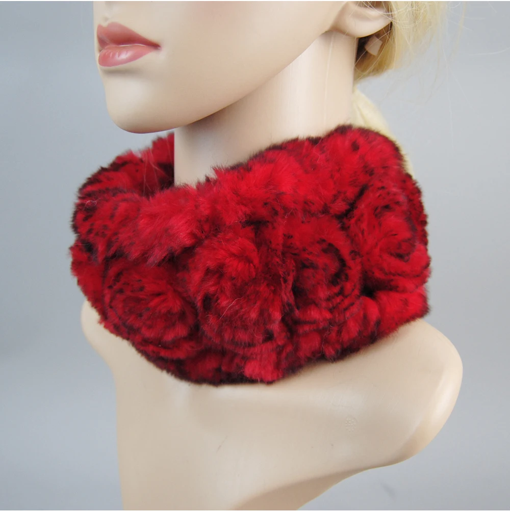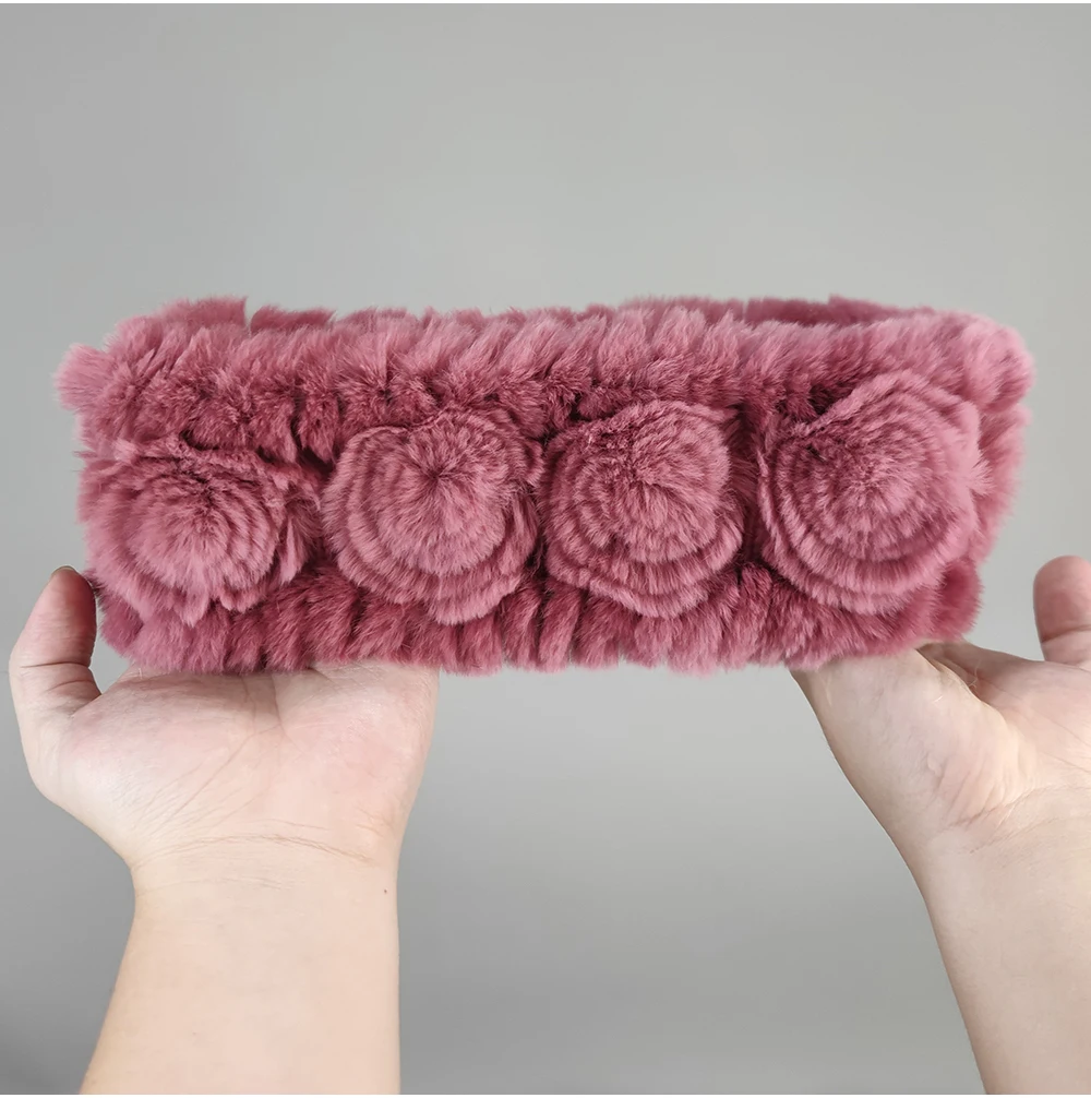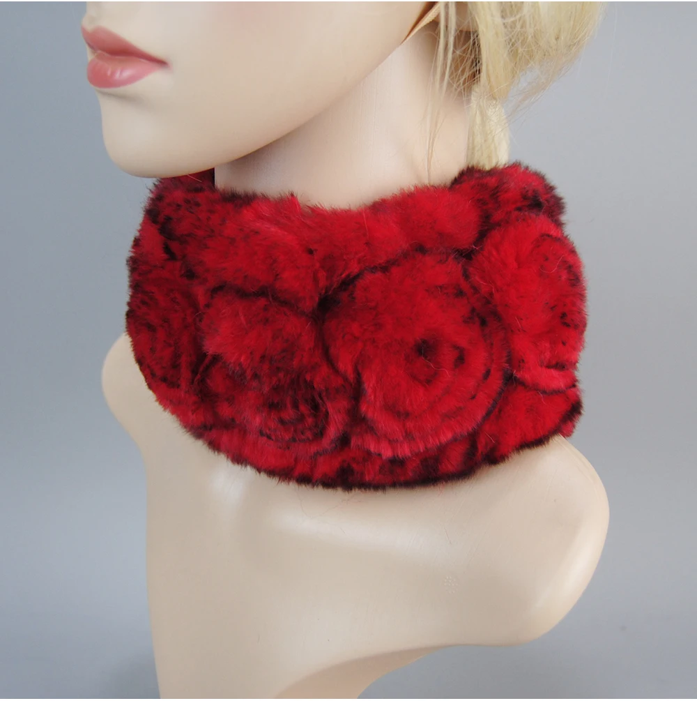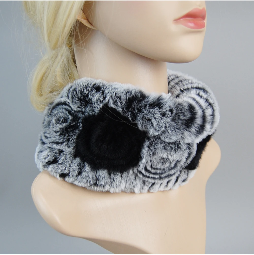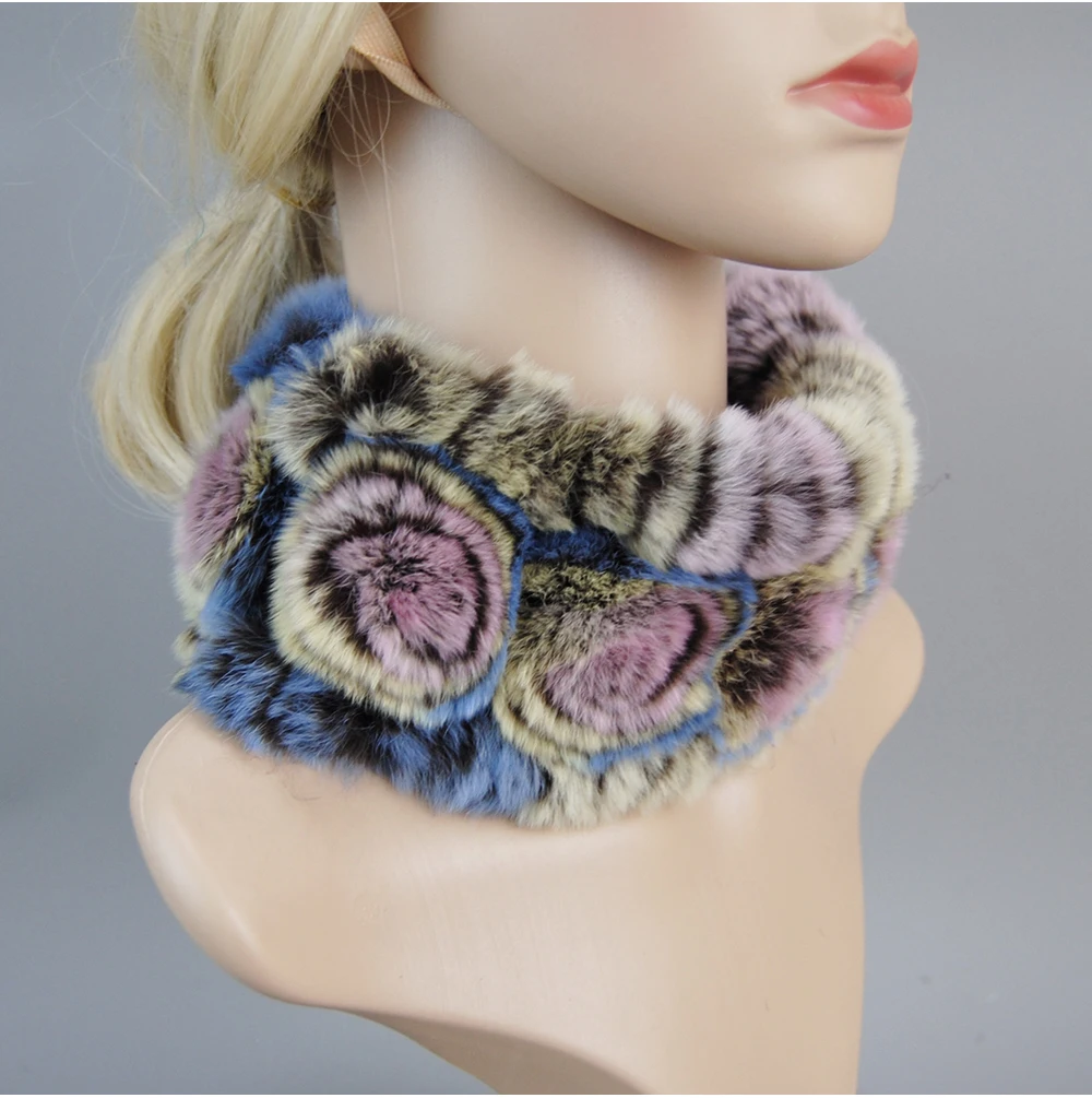 Women Handmade Stretch 100% Real Rabbit Fur Scarf Knit Genuine Rex Rabbit Fur Headbands Girls Natural Rabbit Fur Ring Scarves