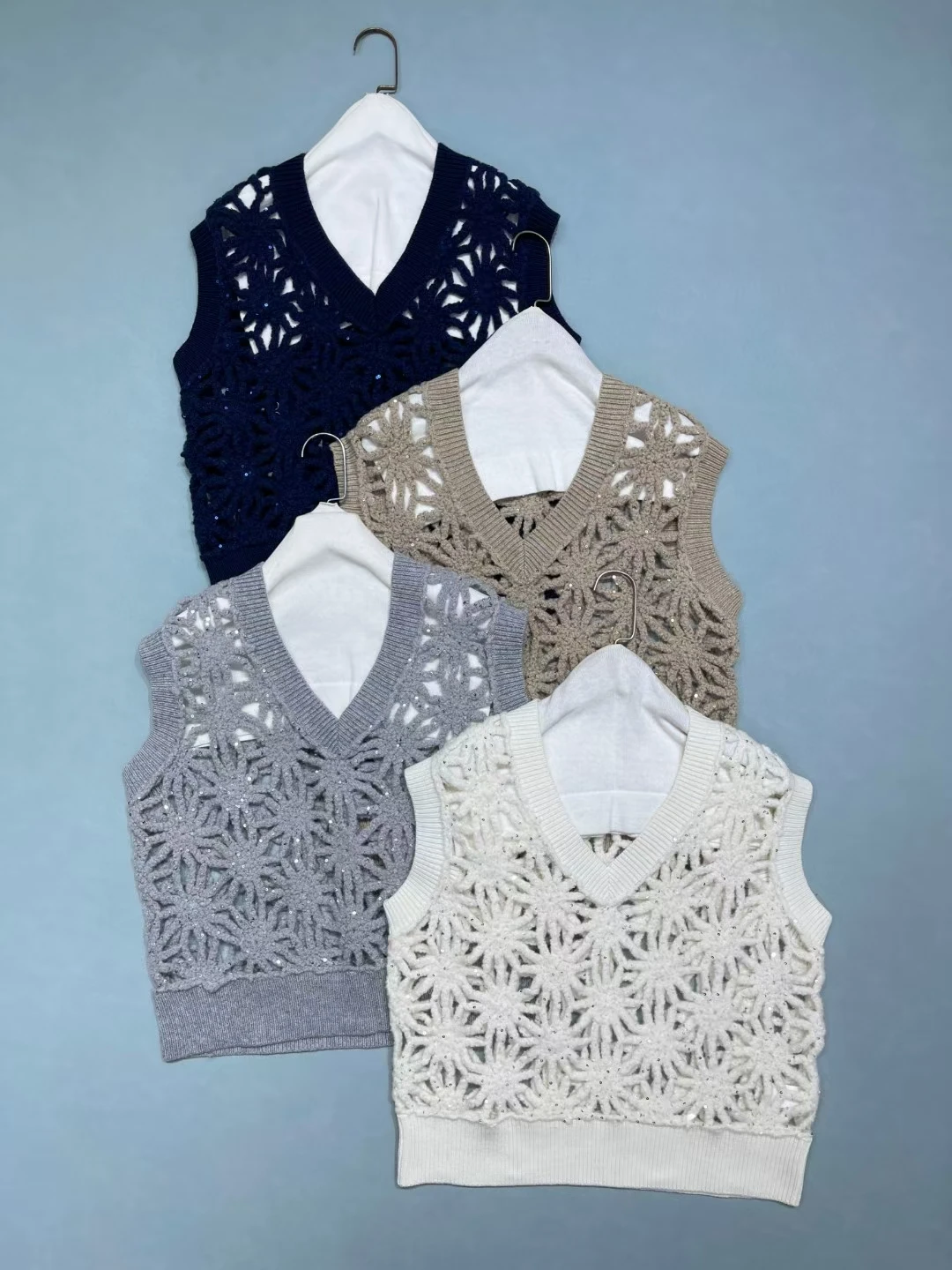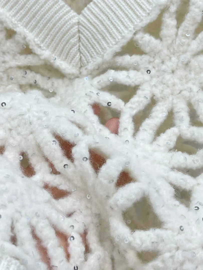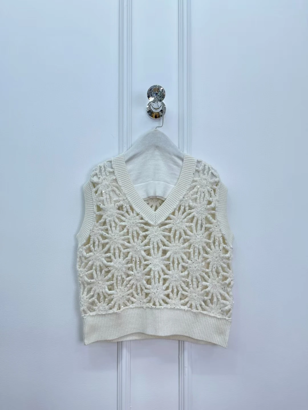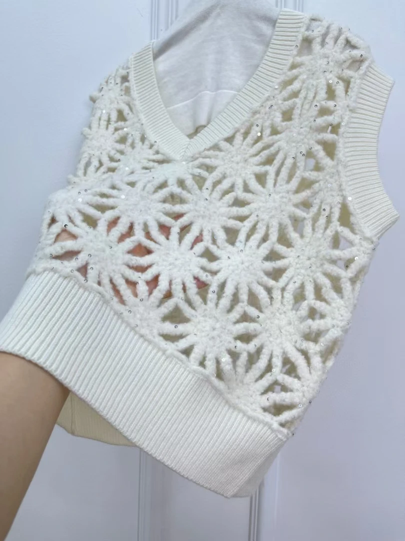 Women V-neck Sequined hollow knitted vest