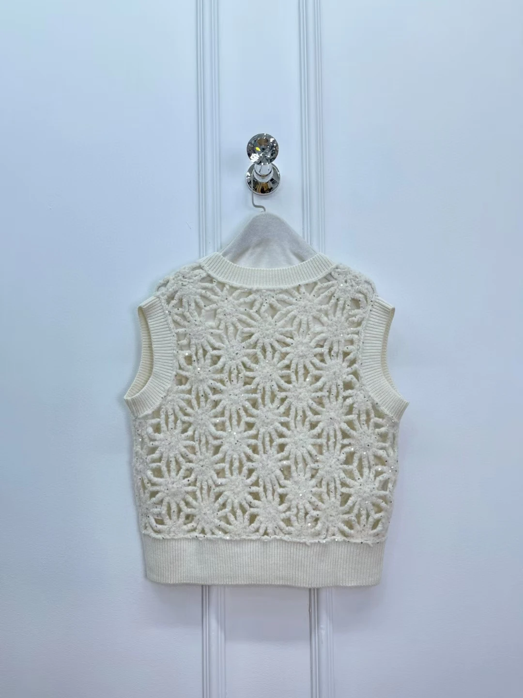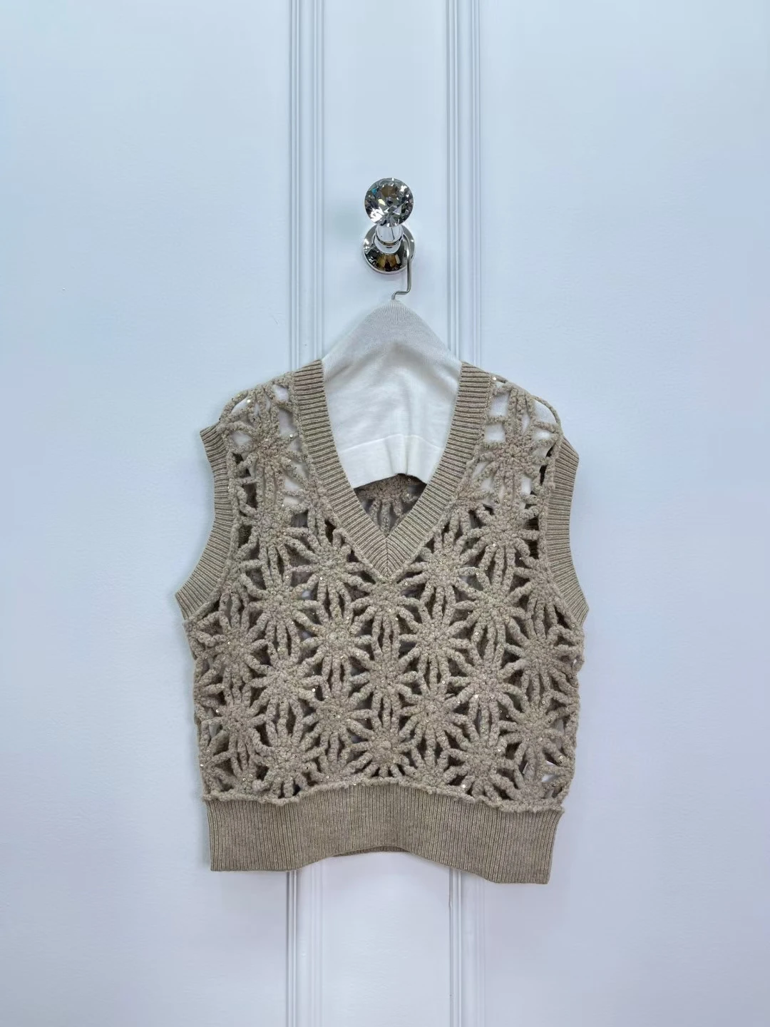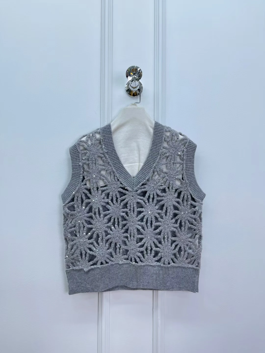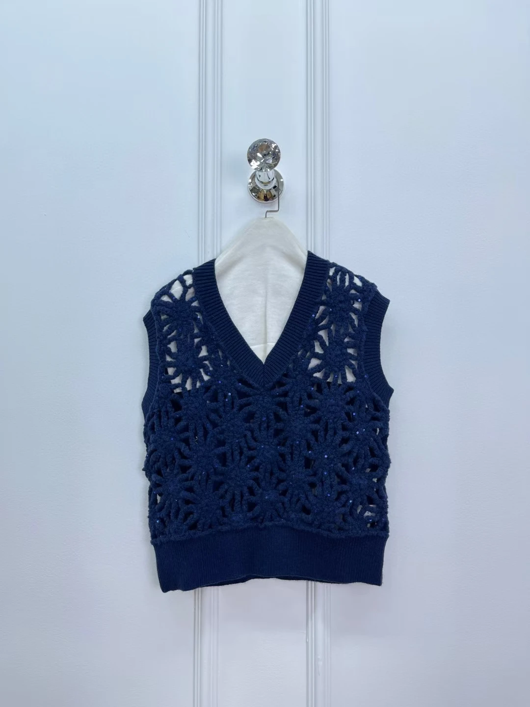 Women V-neck Sequined hollow knitted vest