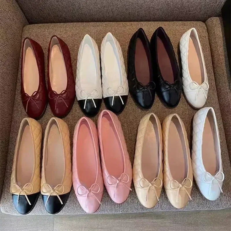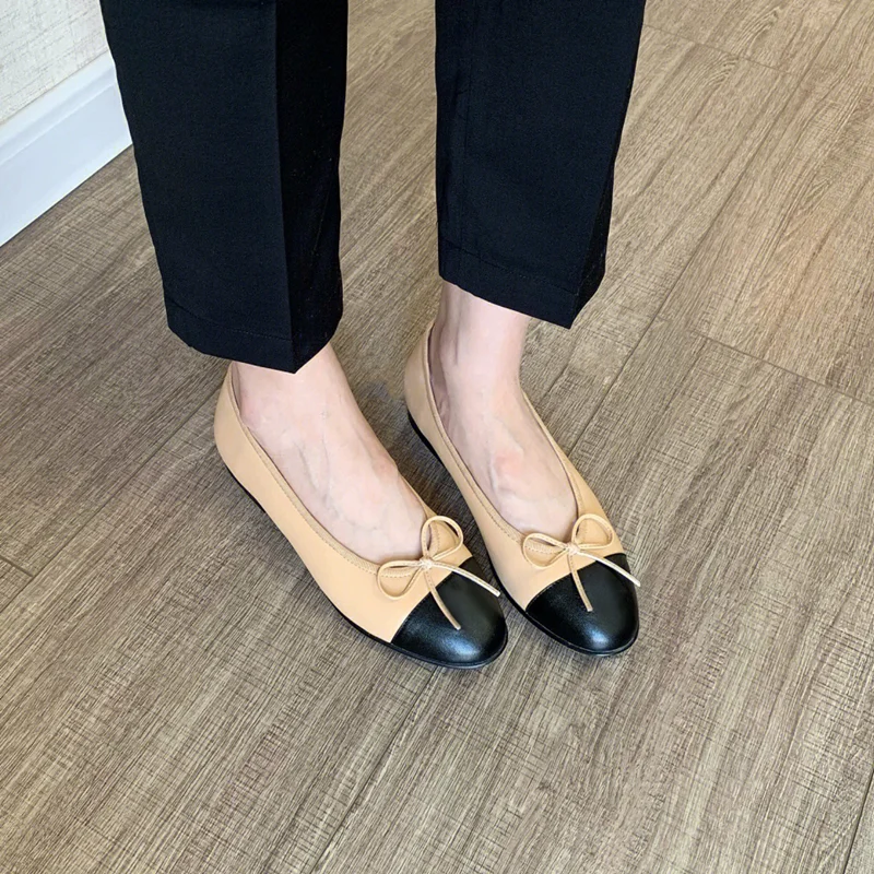 Women’s Ballet Shoes 2025 New Round Headed Bow Comfortable Casual Flat Bottom Shallow Mouth Women’s Single Shoes