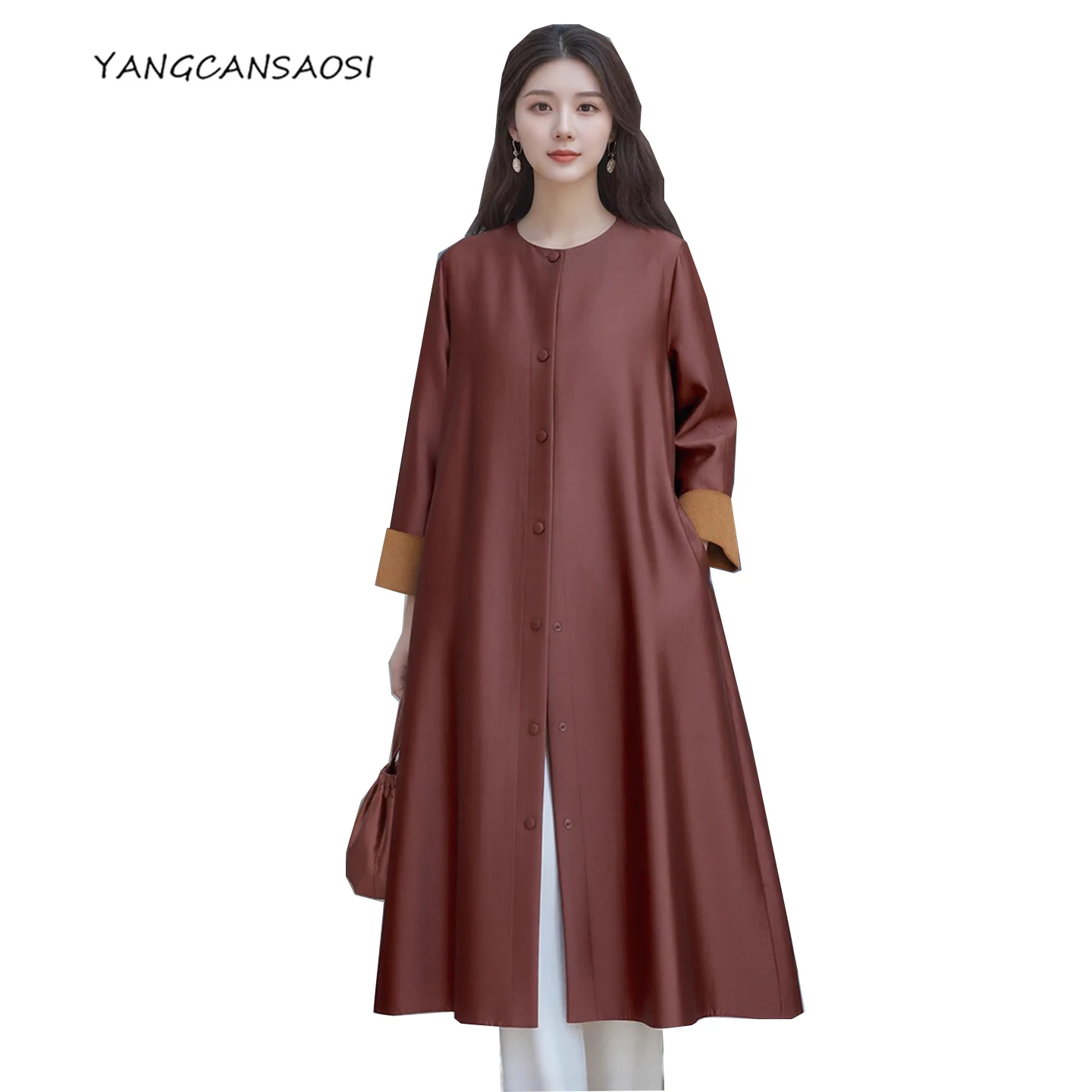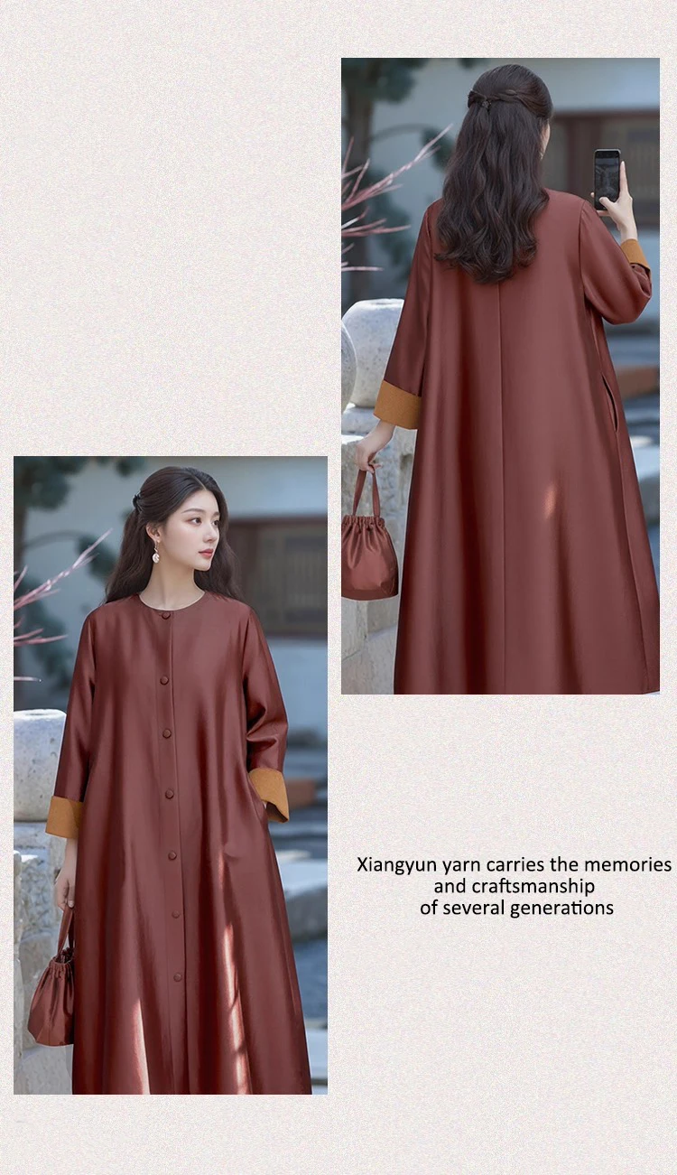 Be the first to review “Women’s Fashion Autumn New Clothing 100% Natural Mulberry Silk Red Cloud Yarn Medium Long Jacket Long Sleeved Windbreaker Dress”