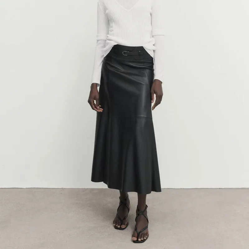 Crafted from genuine leather, this skirt combines durability with a luxurious feel for everyday wear.
