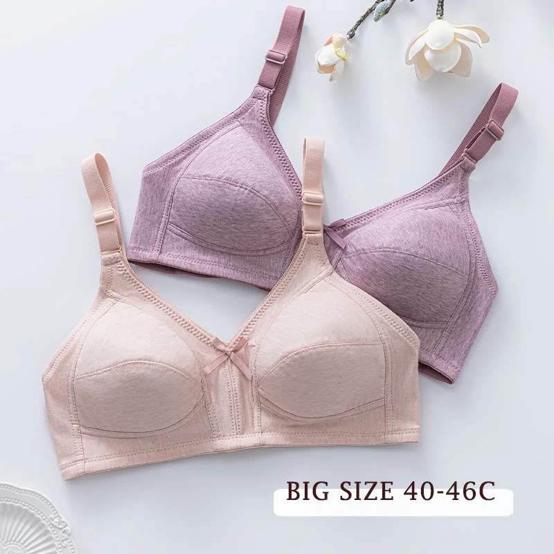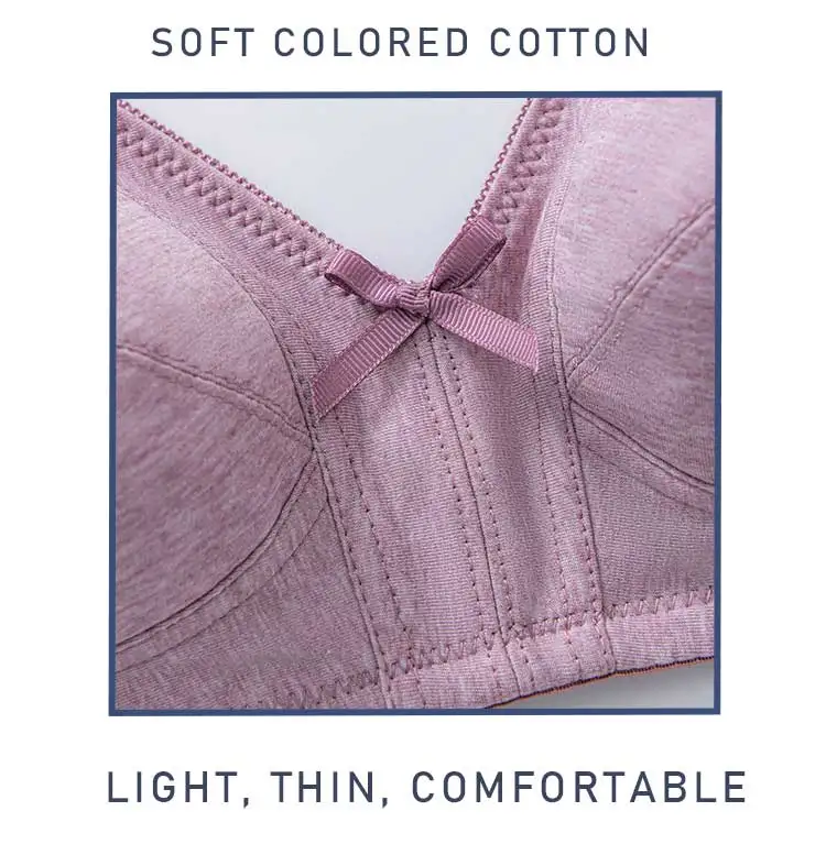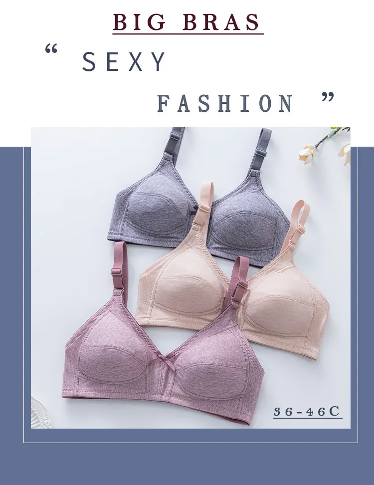 Colorful cotton thin full cup design. This bra is comfortable and soft, without steel ring support, adjustable shoulder straps, 40/42/44/46C suitable for plus size women