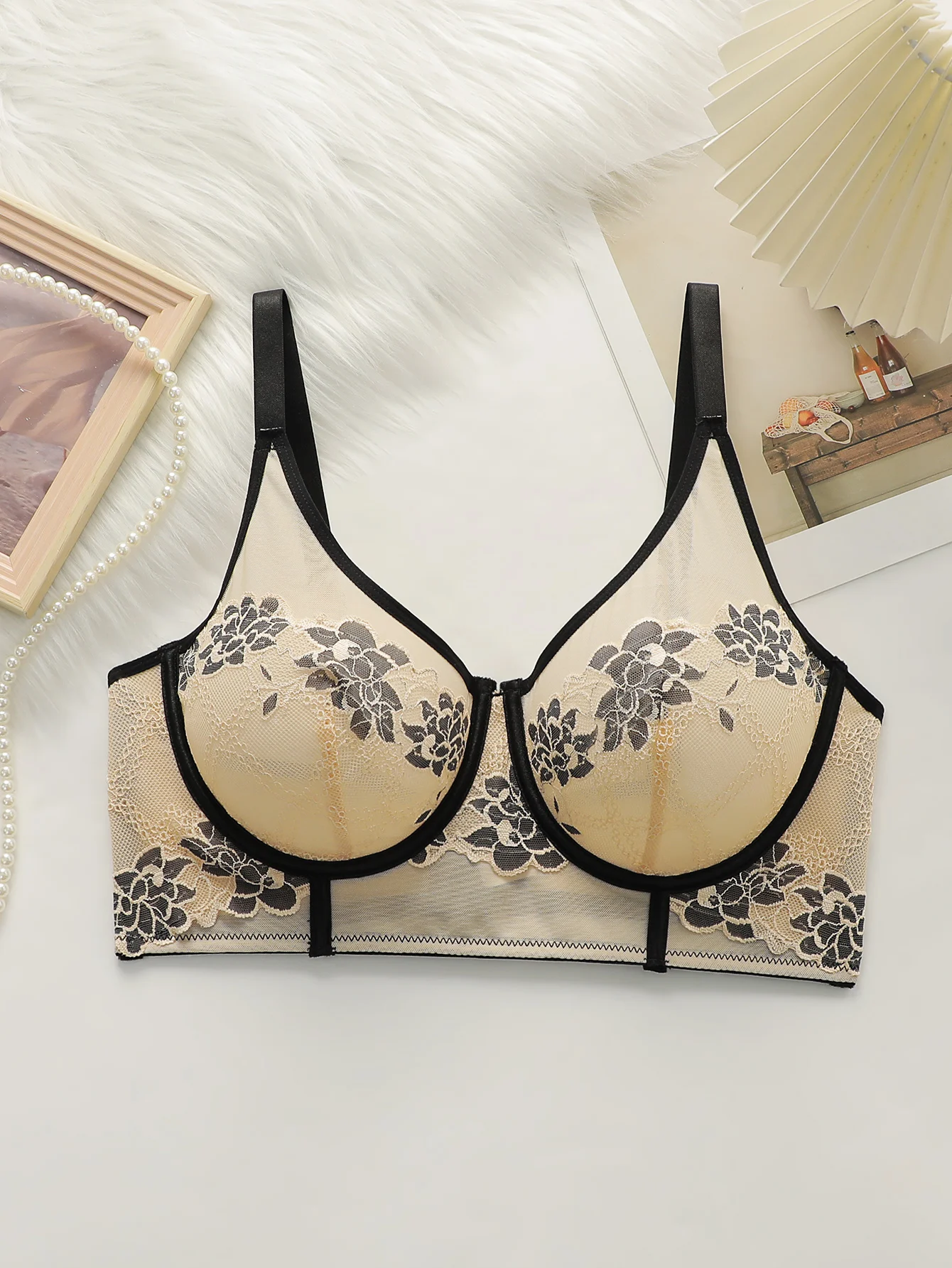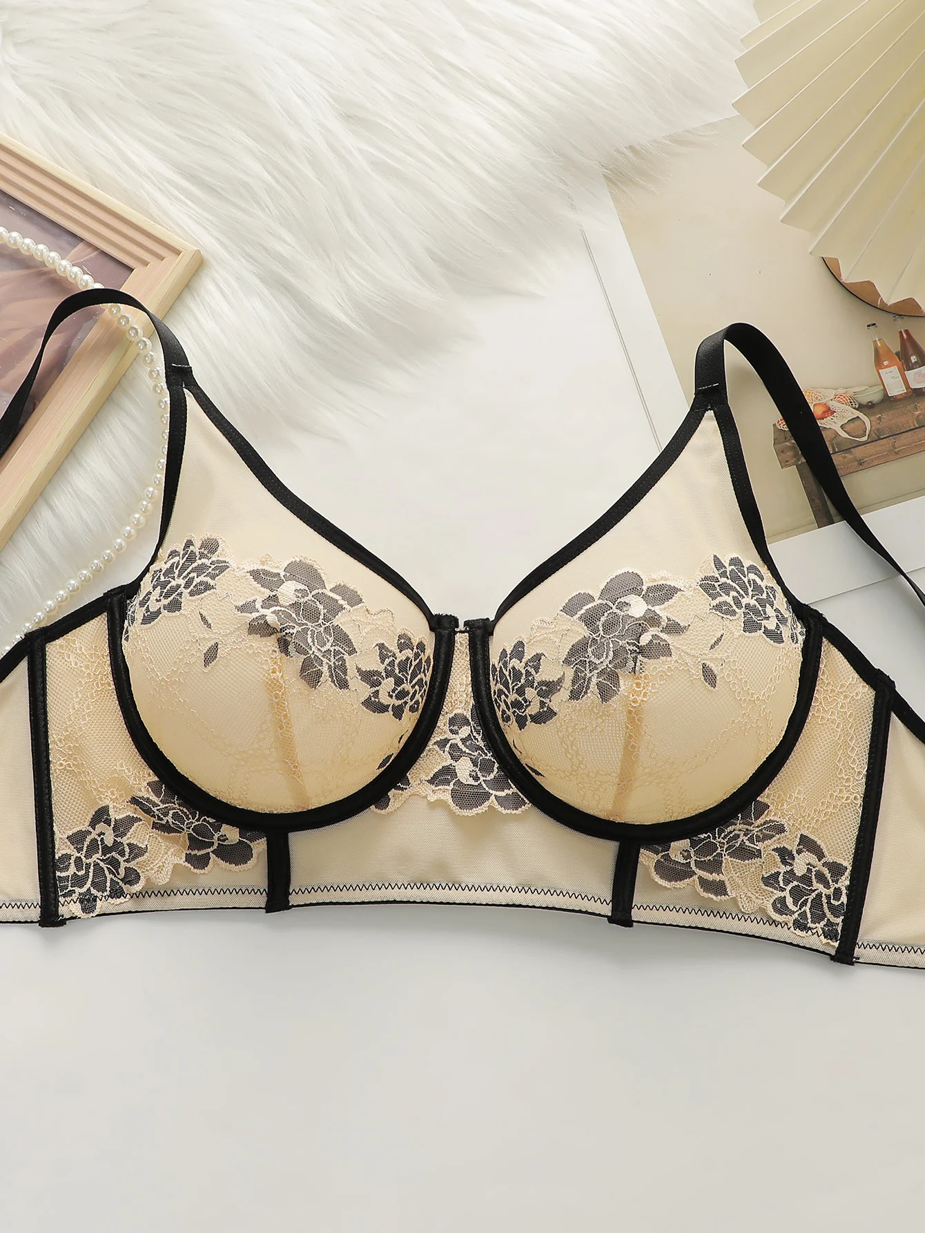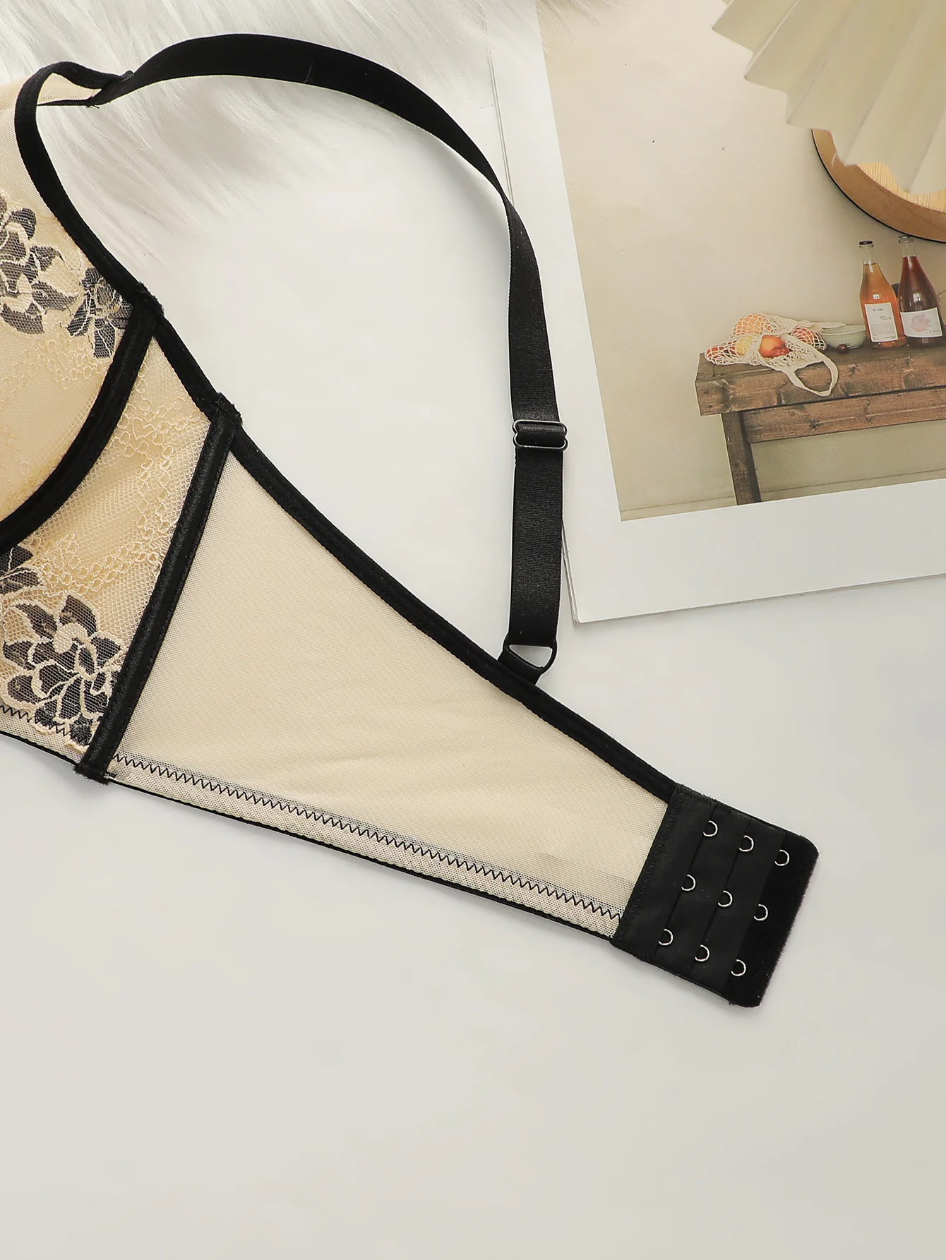 Women’s sexy embroidered lace plus size bra with steel rims gathered push ups adjustable shoulder strap comfortable bra MR2732