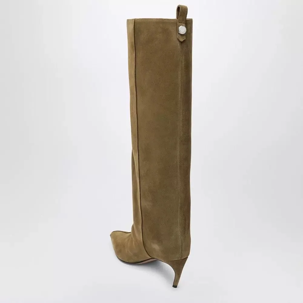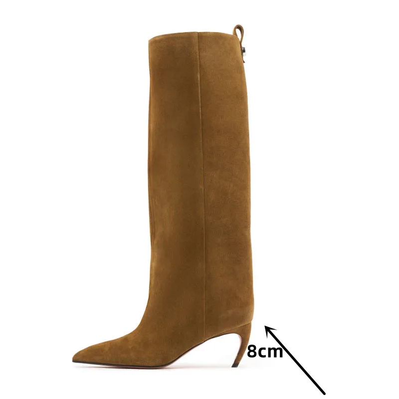 Women’s Slim Fit High Heels Knee High Boots Autumn and Winter Fashion Women’s Pointed Mid Top Boots, Large Women’s Boots