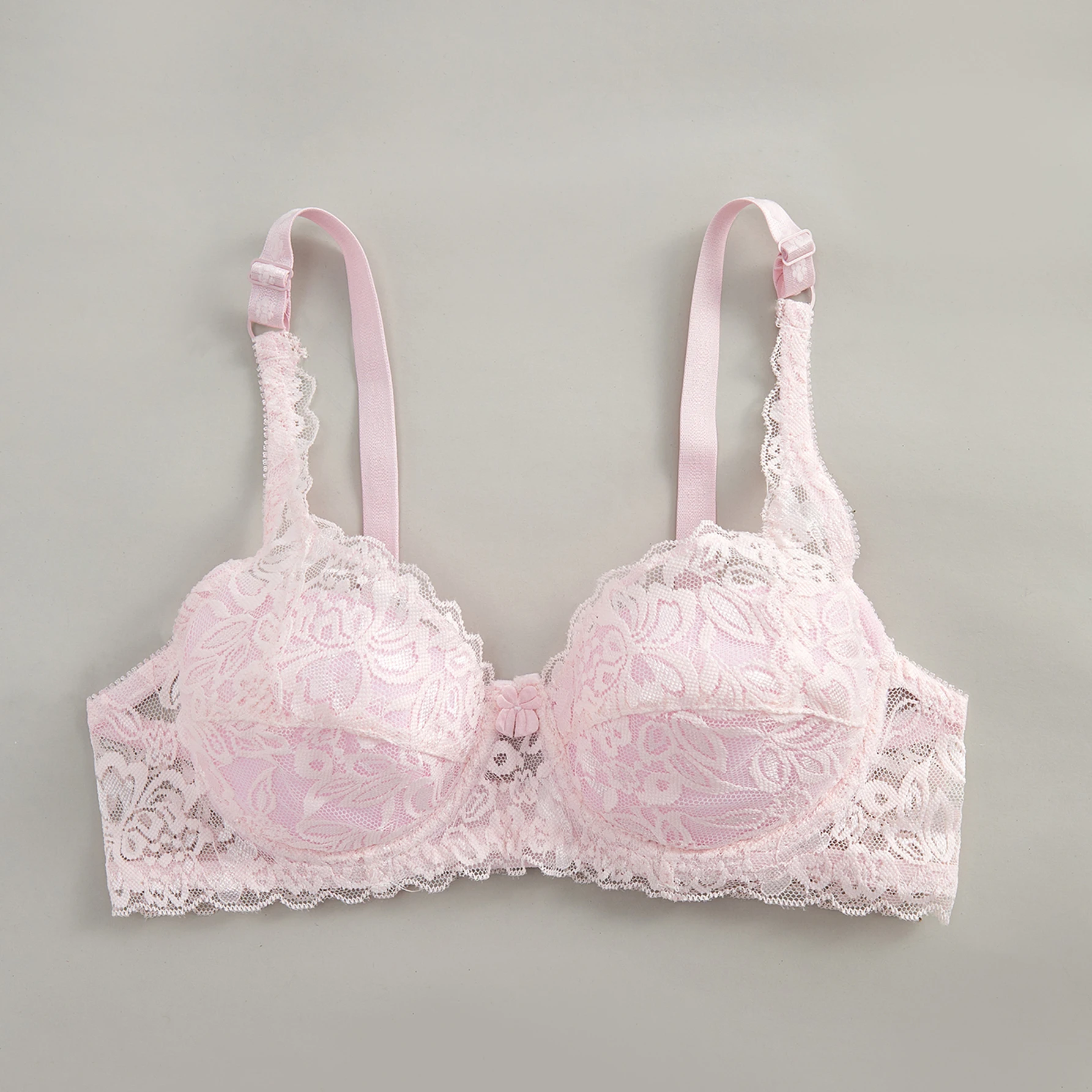 Women’s Solid Color Bow Decor Push-Up Underwire Lace Bra with Adjustable Straps Soft Comfortable Breathable Triple-Breasted Ling