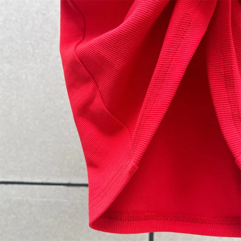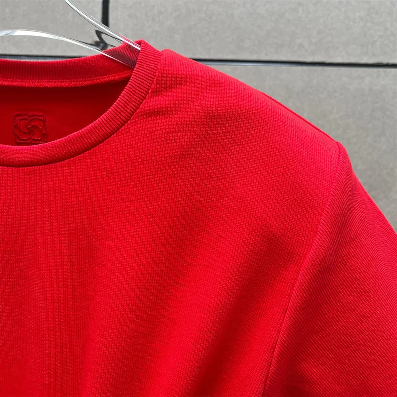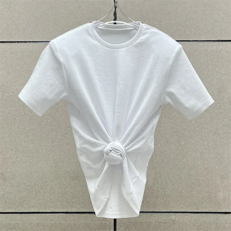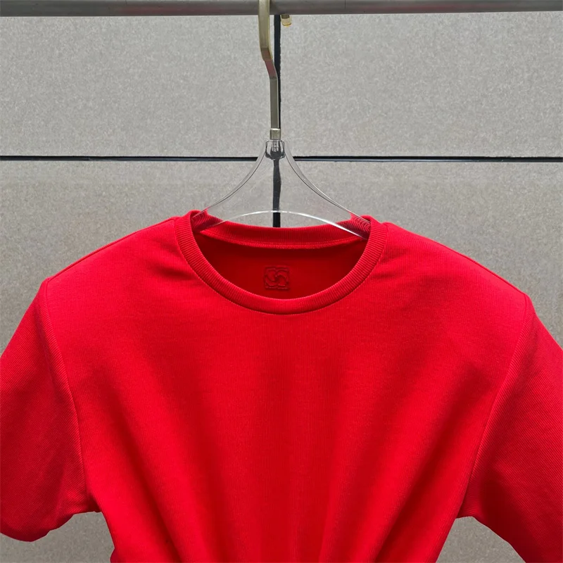 Women’s t-shirt New elastic knitted round neck pullover for summer 2025 pure cotton short sleeved top Shoulder pad slim crop top