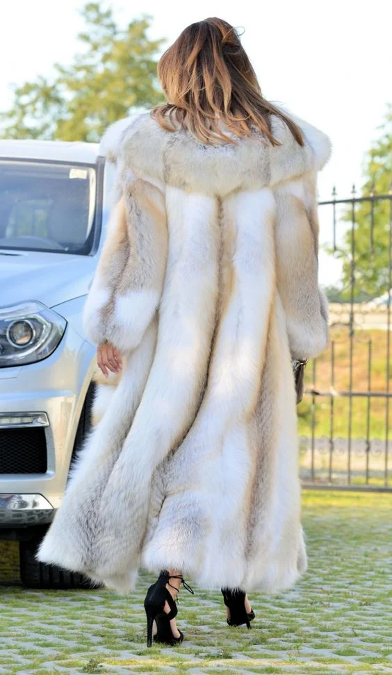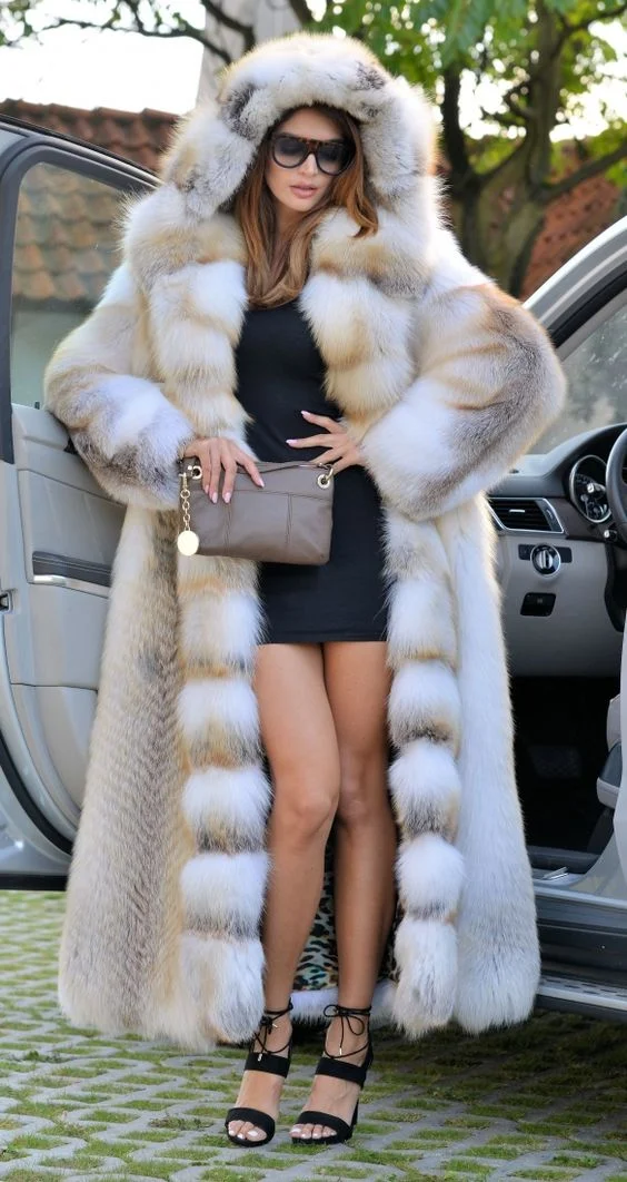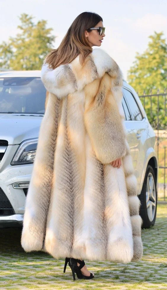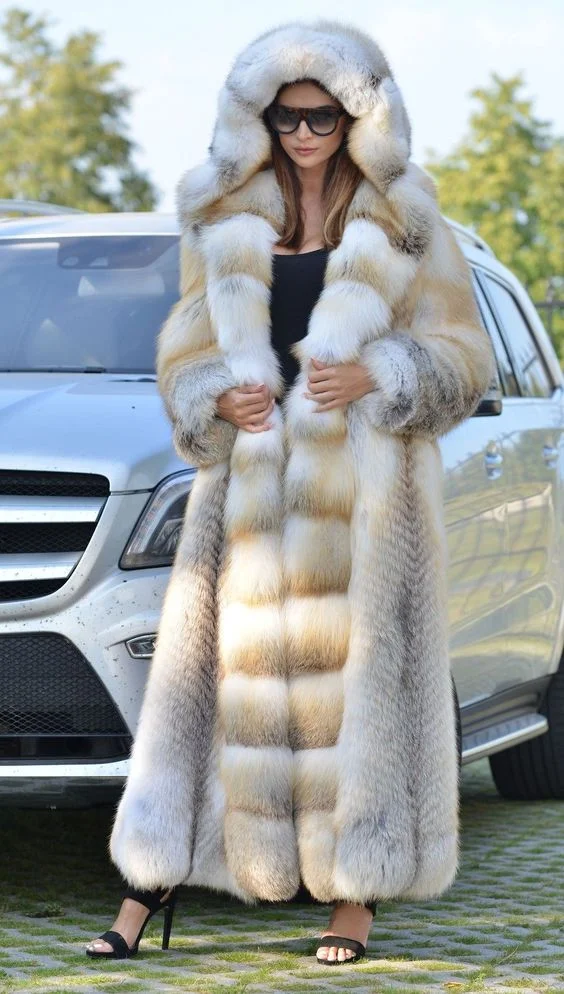 Women’s Winter High Quality Real Fox Fur Coat 120cm Natural Hooded Genuine Gold Island Fox Fur Jackets for Fashionable Cold Wear