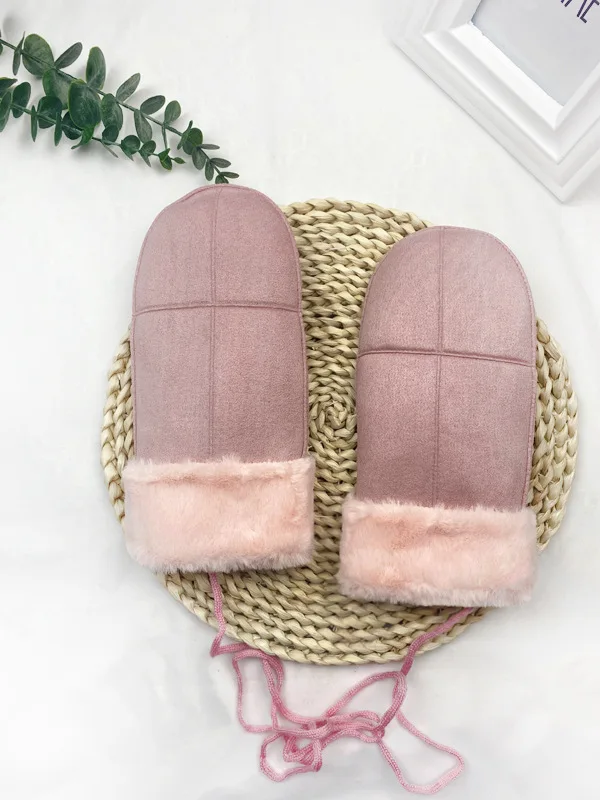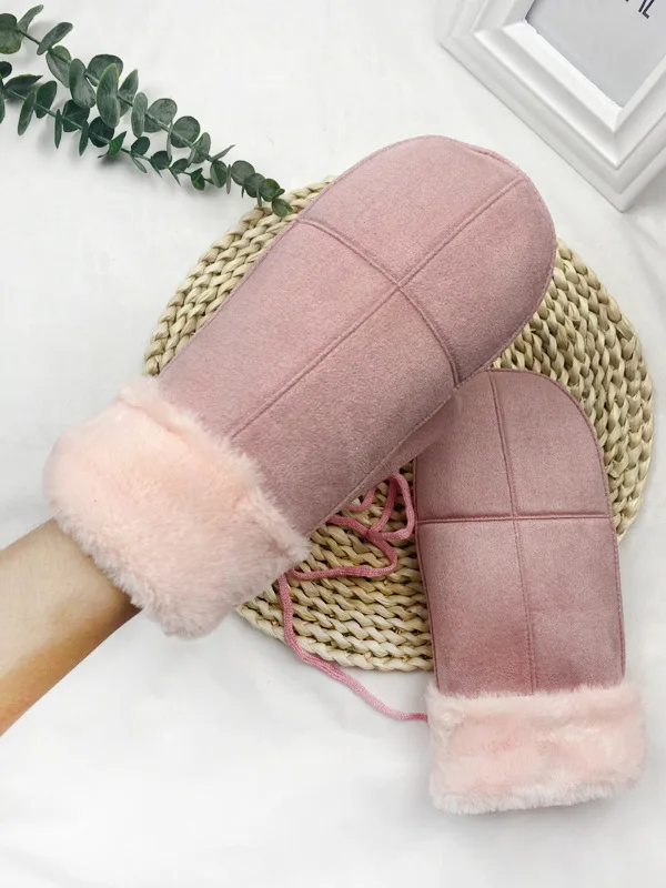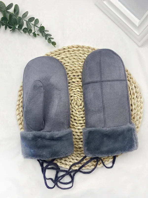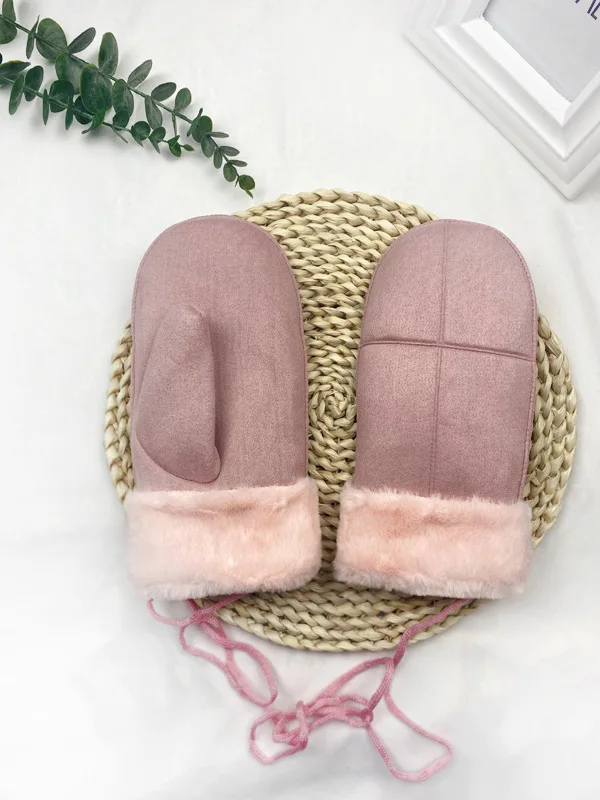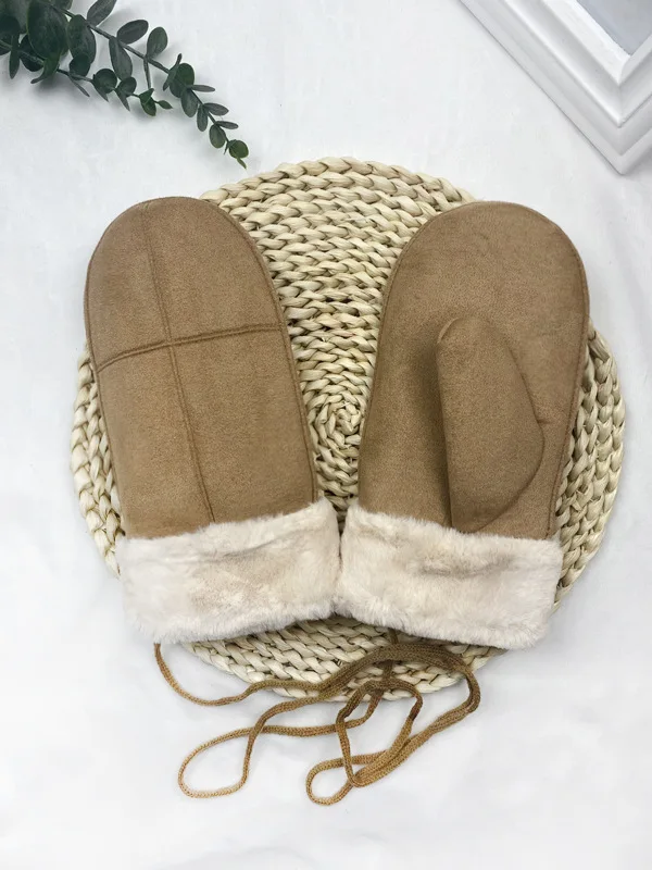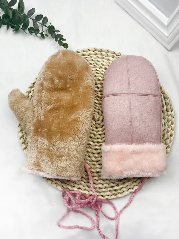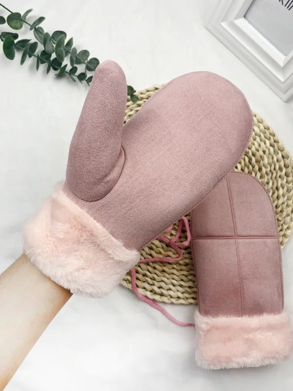 Women’s Winter Thermal Mittens Convertible Suede Mittens with Neck Strap, Plush Lined Insulated Gloves Outdoor Cycling Skiing