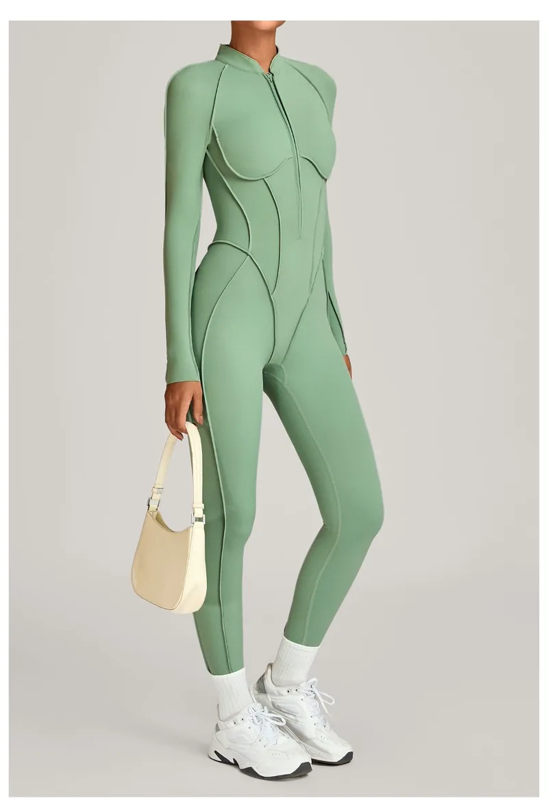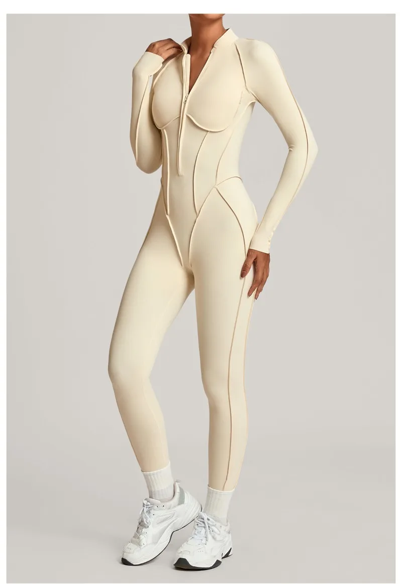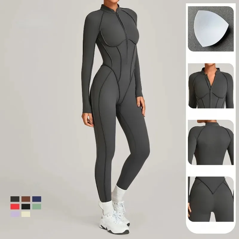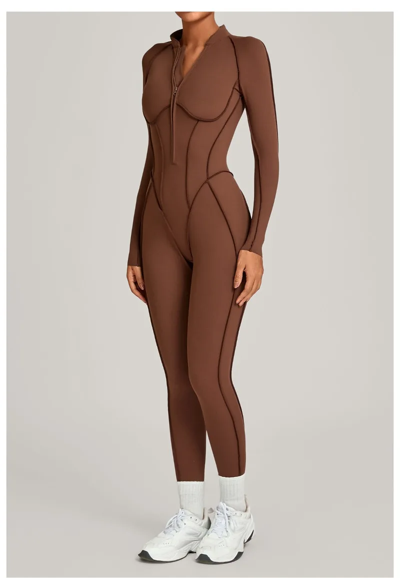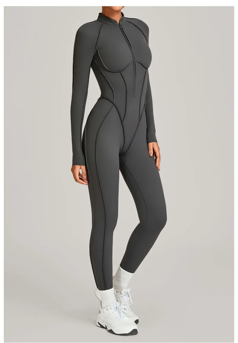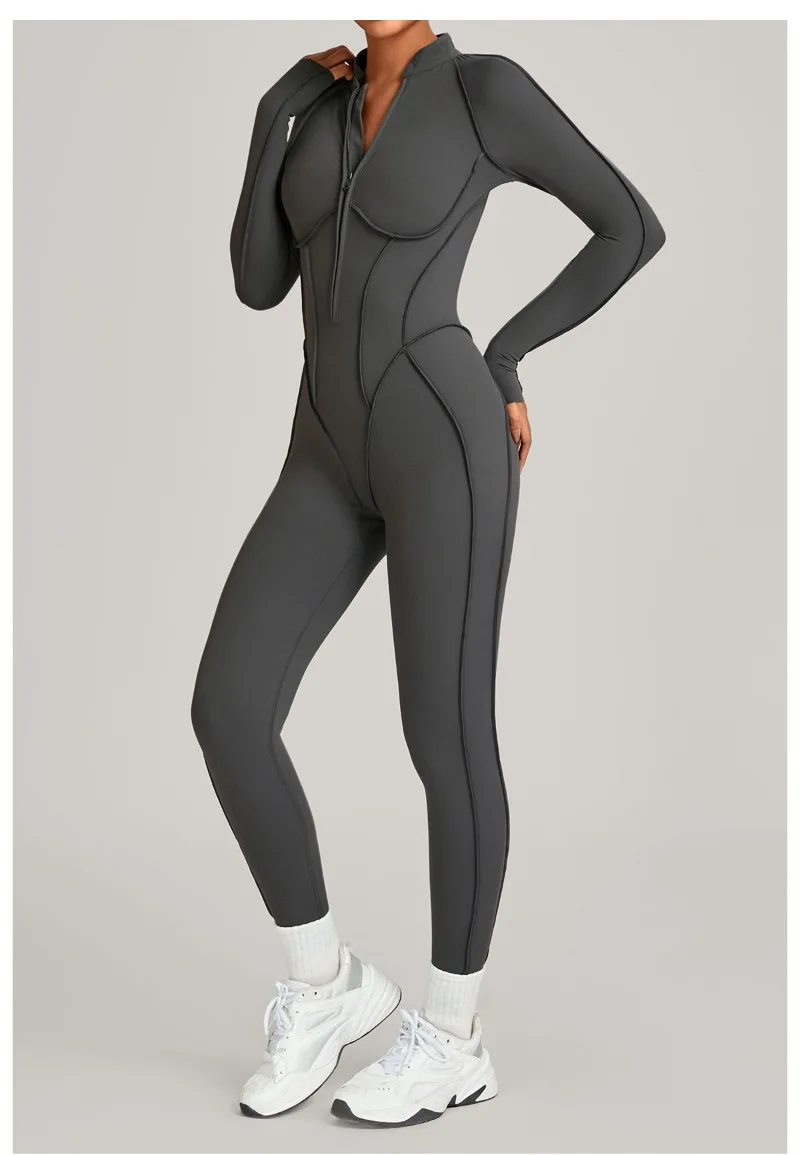 Women’s Yoga Jumpsuits One-piece Sports Long-Sleeved Winter Hip-lifting Slimming Outdoor Gym Workout Leisure Fitness Bodysuits