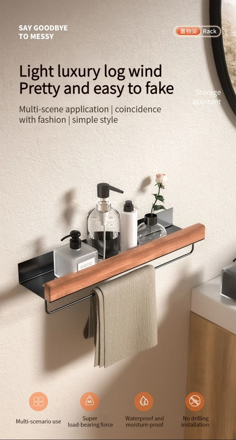 Wood Aluminum Material Bathroom Shelf Organizer Corner Shelf Shampoo Storage Shelf Shower Wall Rack Bathroom Organizer Accessory