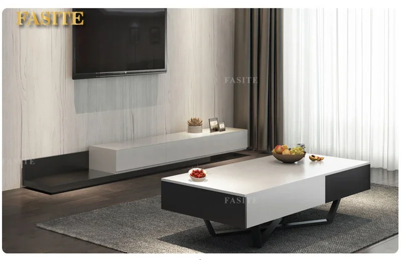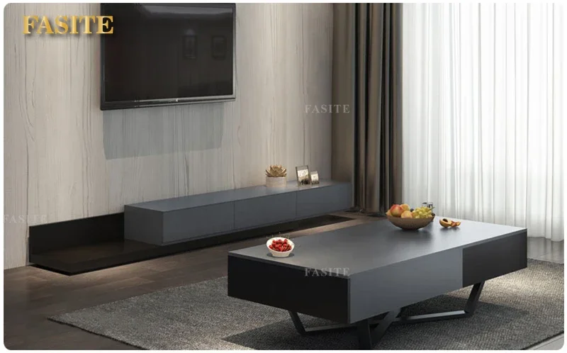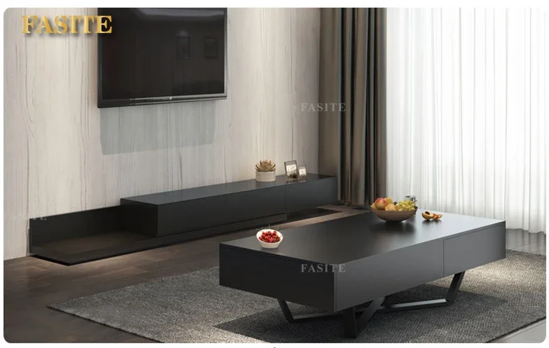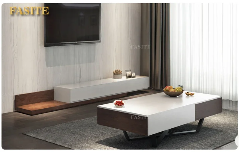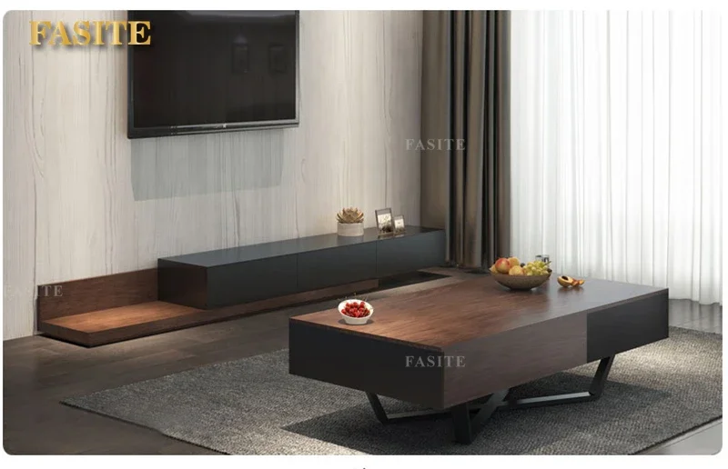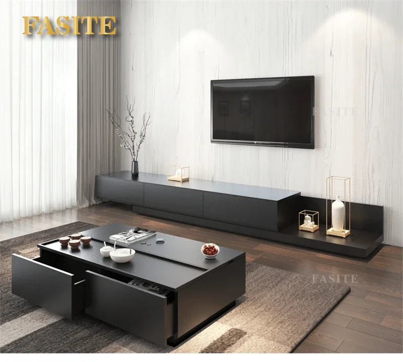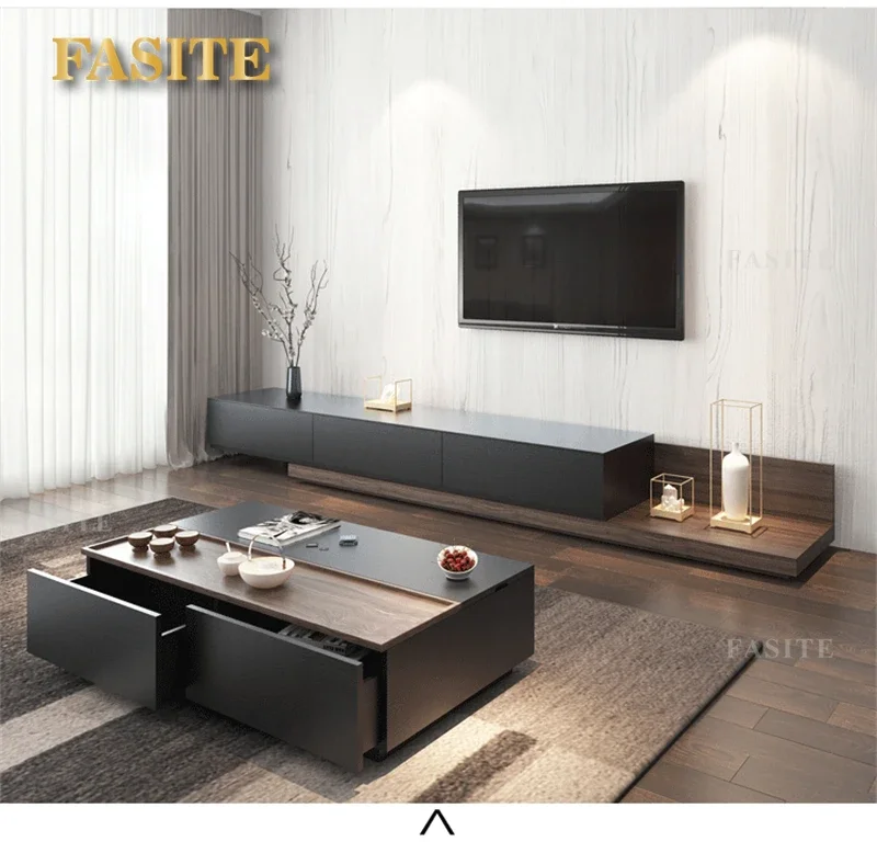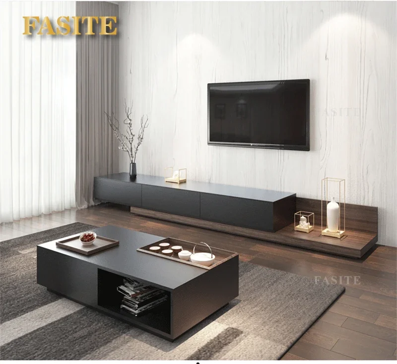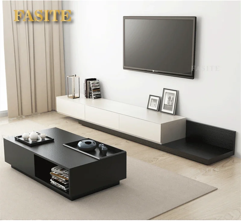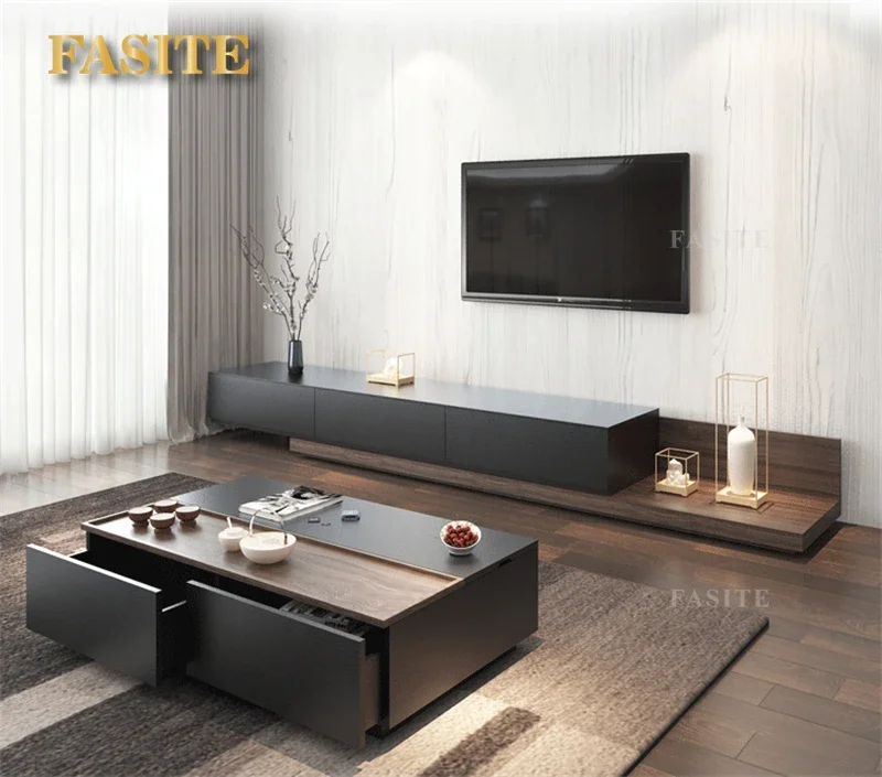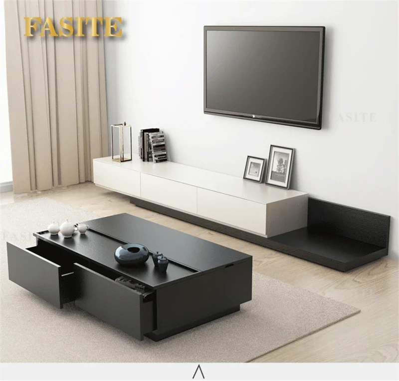Wooden TV Cabinet Living Room Furniture Light Luxury Creative Retractable TV Stands Modern Small Apartment Floor TV Stand