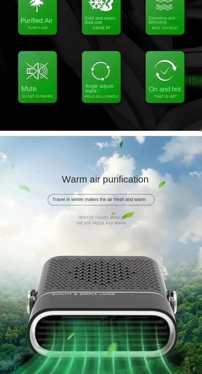 Portable Car Heater is an efficient heating device designed for winter driving. It uses innovative technology to quickly heat the air in the car, helping drivers and passengers quickly remove haze, frost and ice on the windows to ensure driving safety. Whether it is a cold winter or in humid weather, it can provide you with a comfortable and warm in-car environment, making driving smoother.