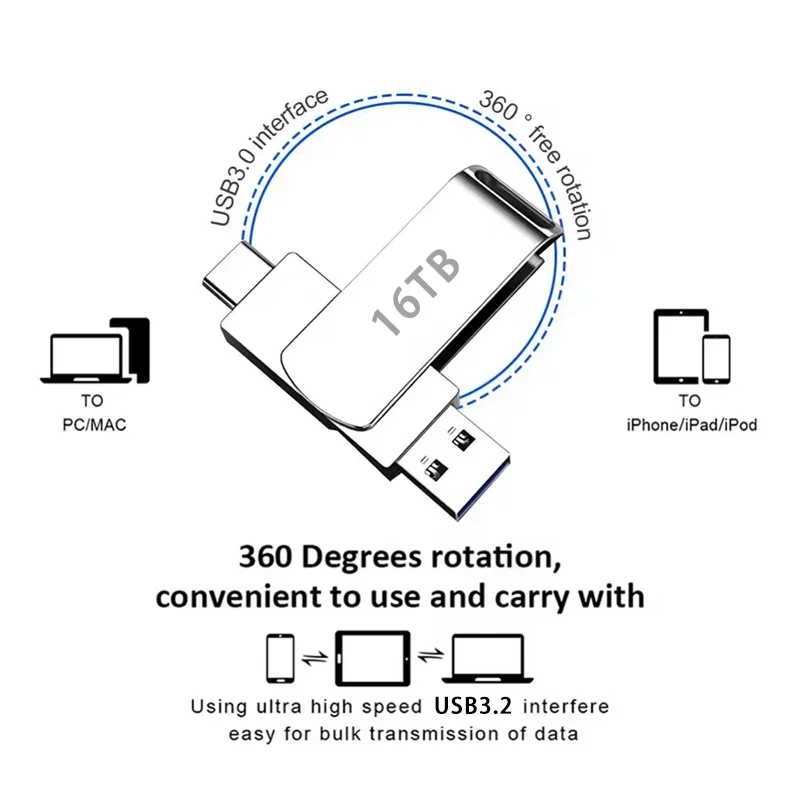 16tb Flash Drive|High Capacity Storage:Unleash massive storage with the 16TB USB flash drive, perfect for storing extensive media files and backups.