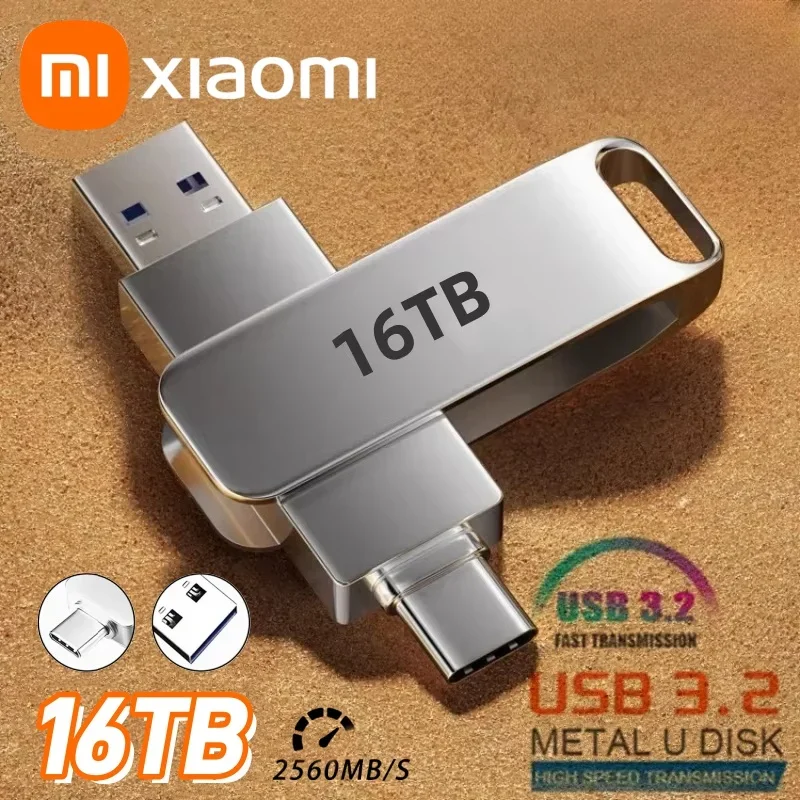 Xiaomi Flash Drive 16TB Usb 3.2 Super High Speed Metal Transfer Waterproof U Disk Pen Drive Type C Disk Memory USB Drive Disk