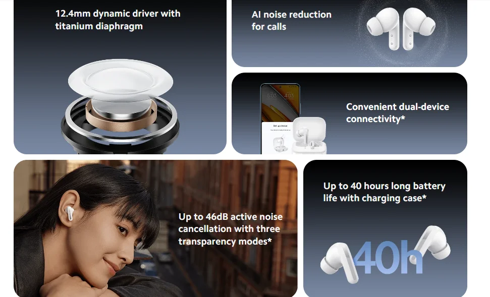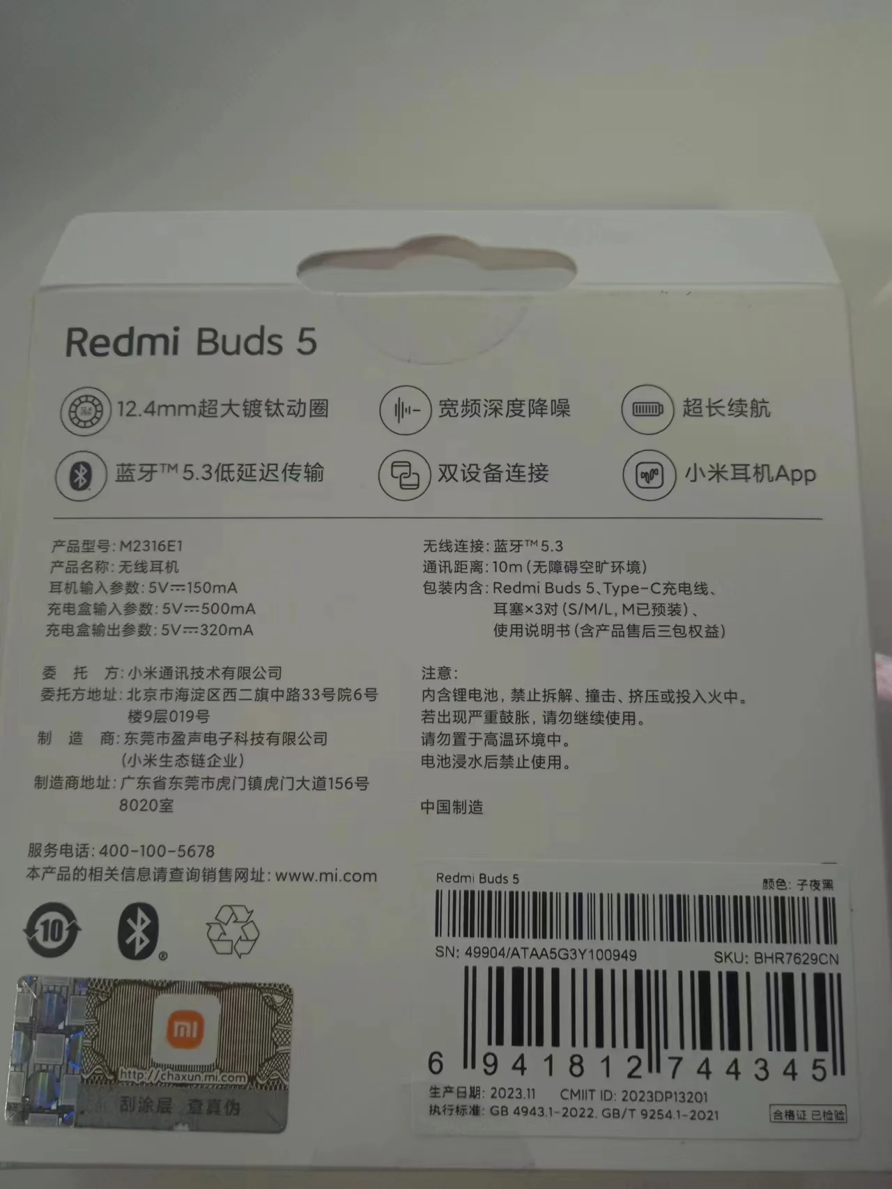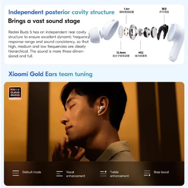 Xiaomi Redmi Buds 5 Earphone 46dB Active Noise Cancellation Bluetooth 5.3 TWS ANC Headset 40h Long Battery Life CN version