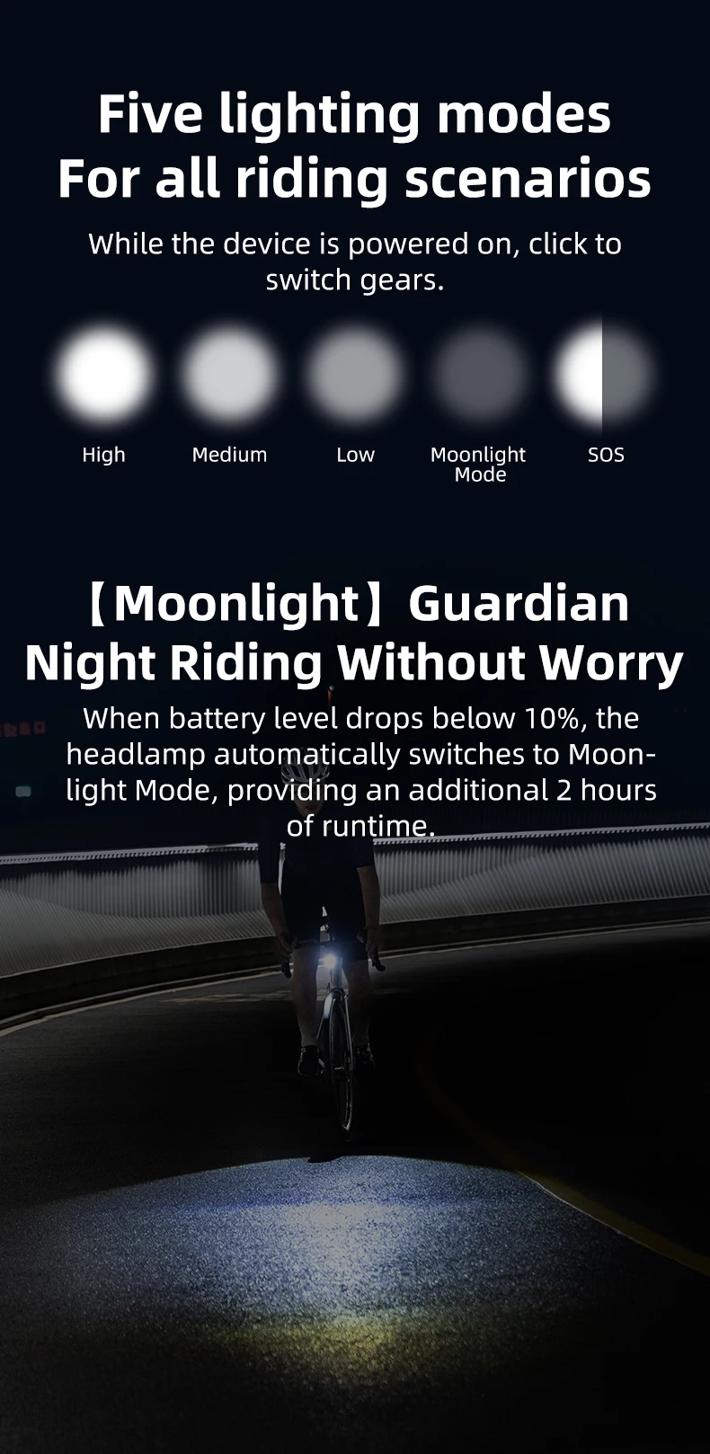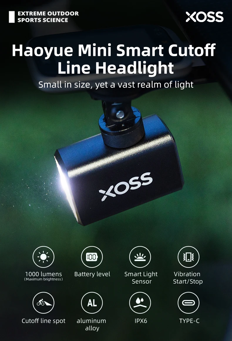 XOSS Noctera Bike Headlight 1000 Lumens High-Brightness Hanging Warning Light Aluminum Alloy IPX6 2800mAh Cycling Front Lamp