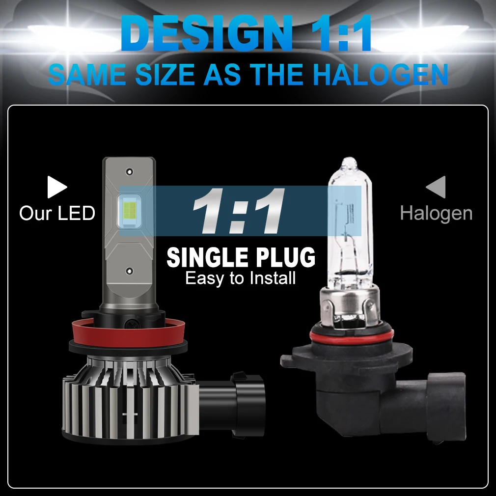 LM H11 9005 LED bulb and halogen lamp luminous point, the focus point is exactly the same
