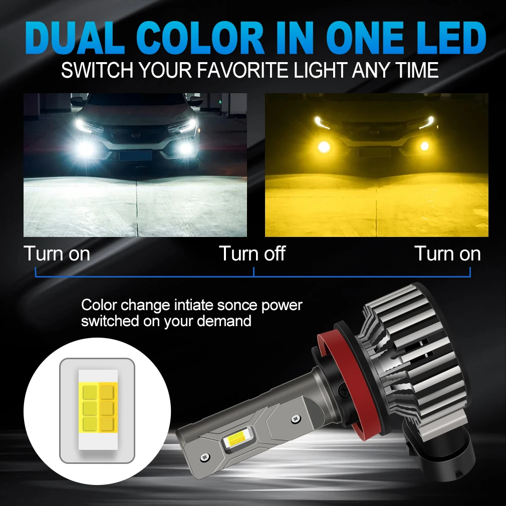 XSTORM H11 9005 LED Fog Light 30000LM 100W LED Fog Headlight Bulb 3570 CSP Chips Signal Lamp Auto Turbo Lamps White Yellow+White