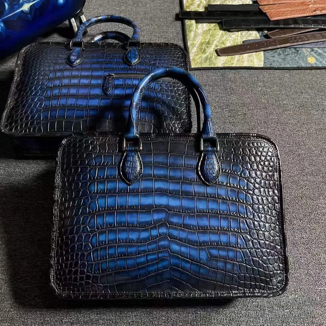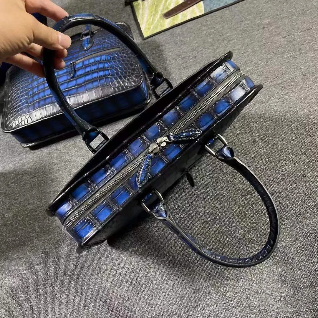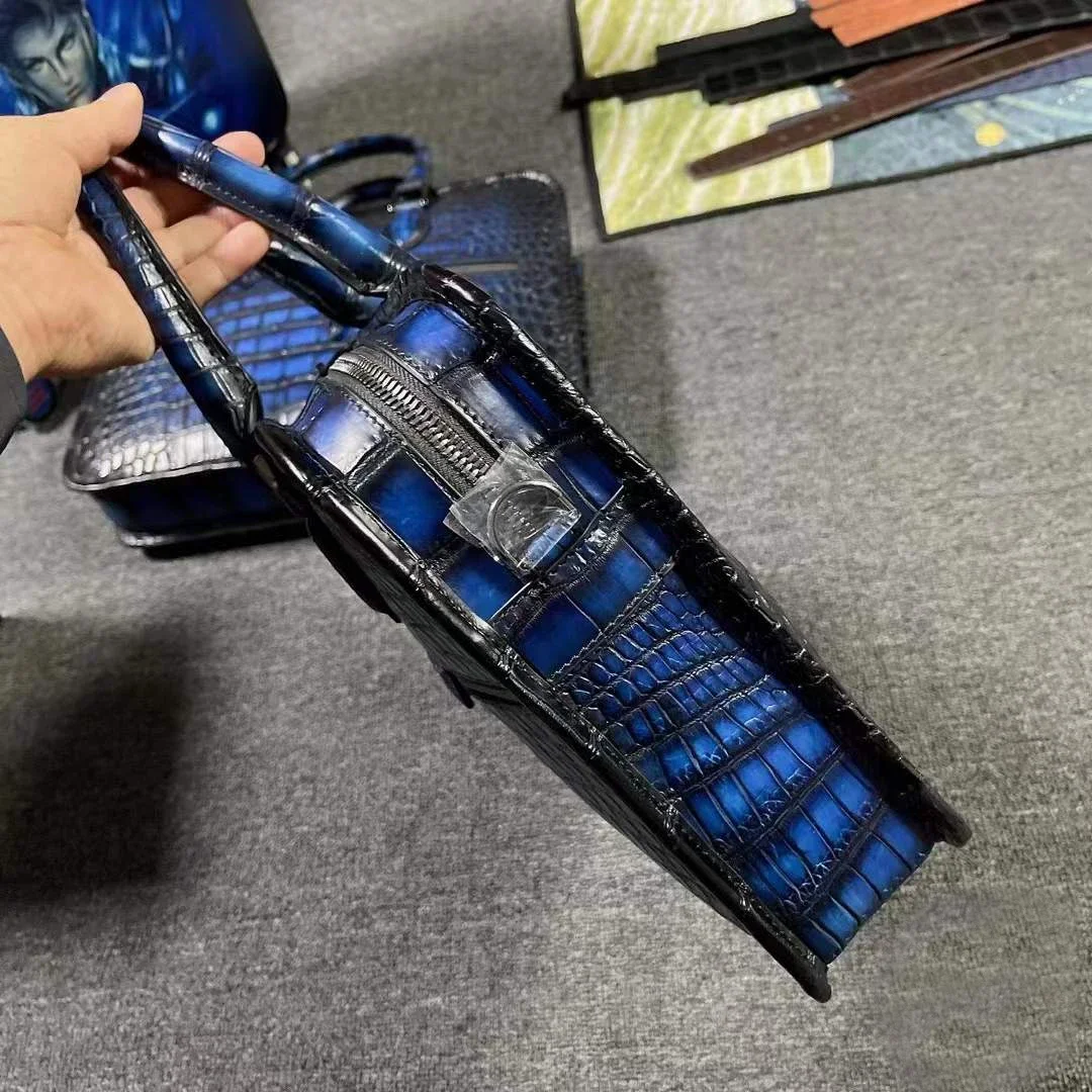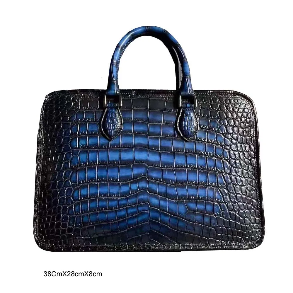 yingshang new handbag men crocodile leather bag male crocodile briefcase blue brush color navy business bag big