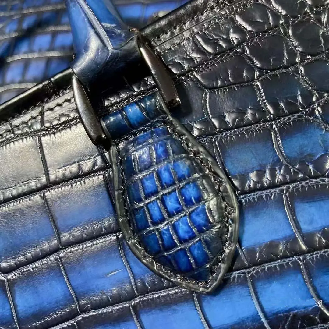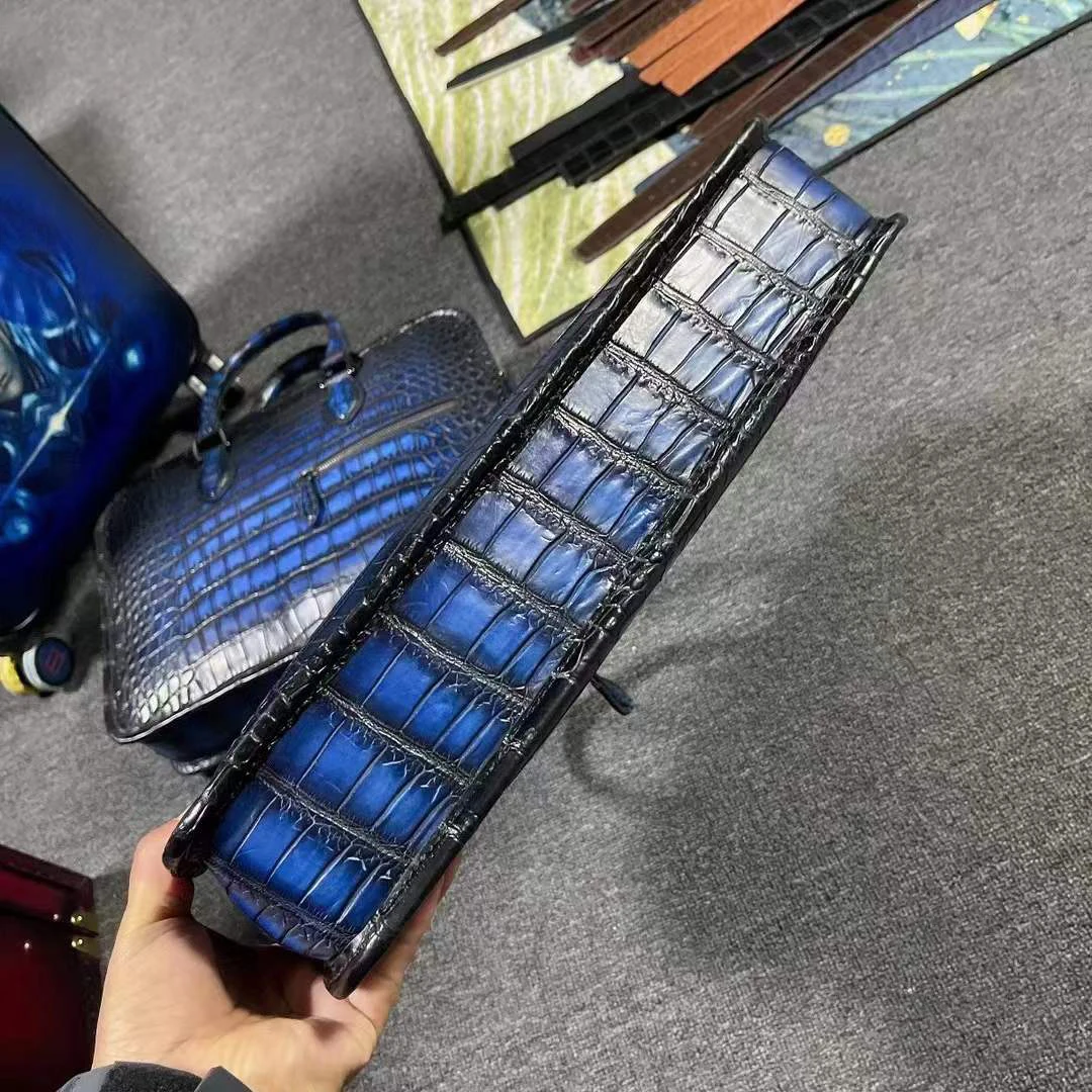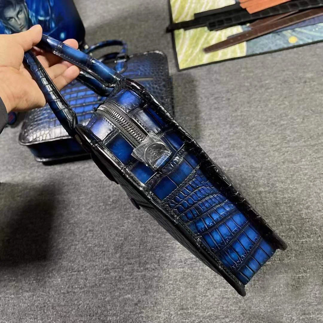 yingshang new handbag men crocodile leather bag male crocodile briefcase blue brush color navy business bag big