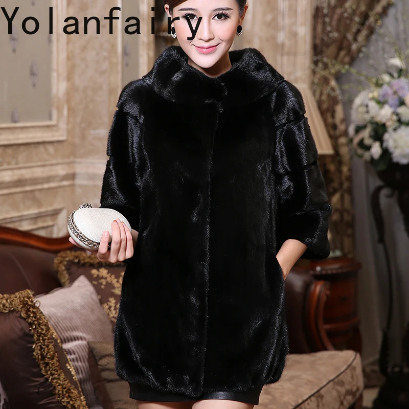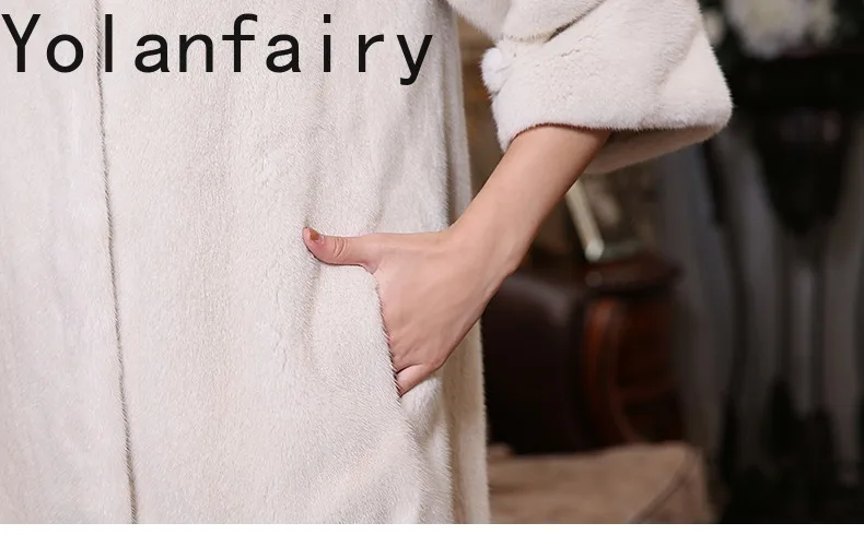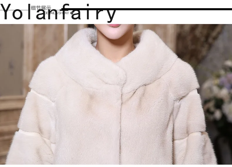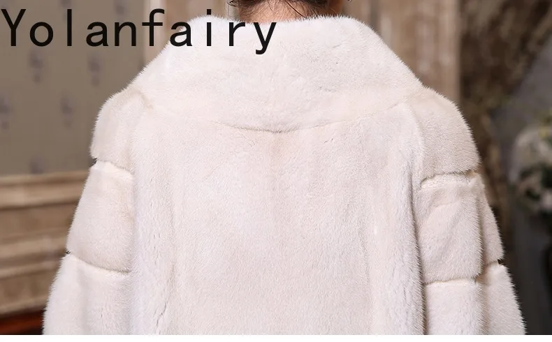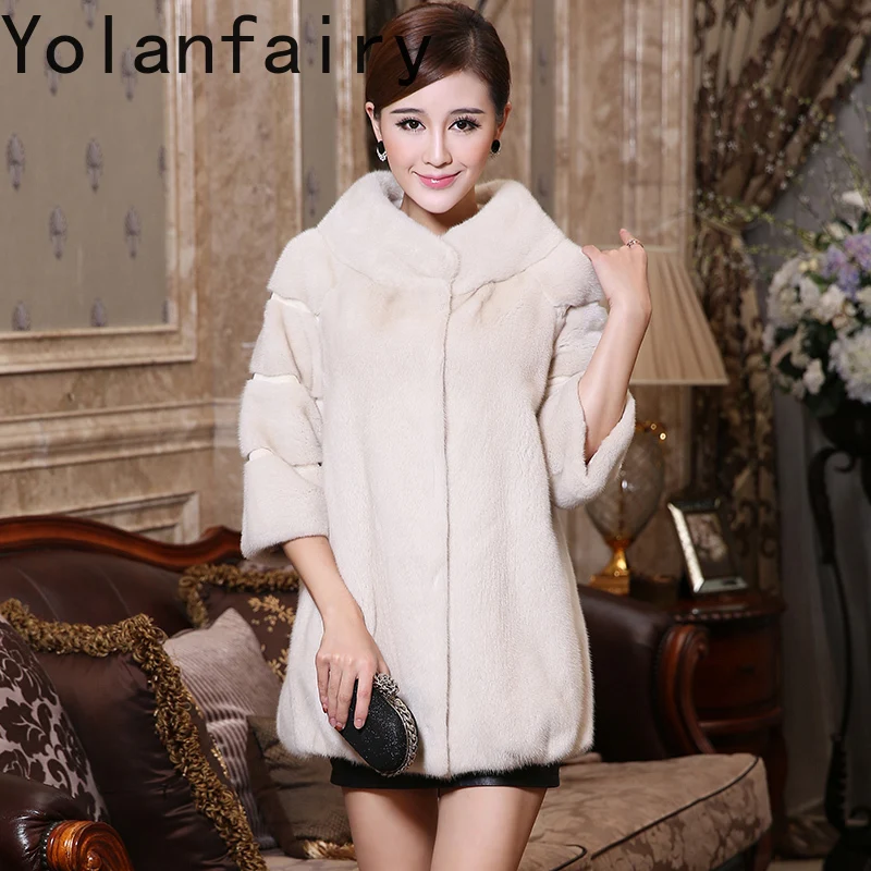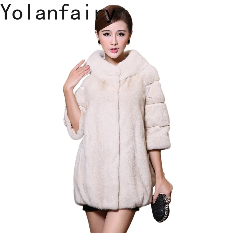 YOLANFAIRY 100% Whole Mink Fur Jacket for Women Winter High-end Natural Fur Coat Real Mink Fur Coats Woman Three Quarter Sleeve