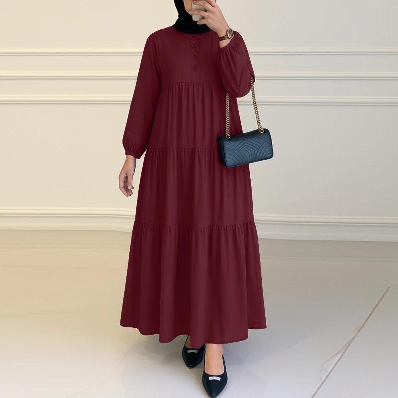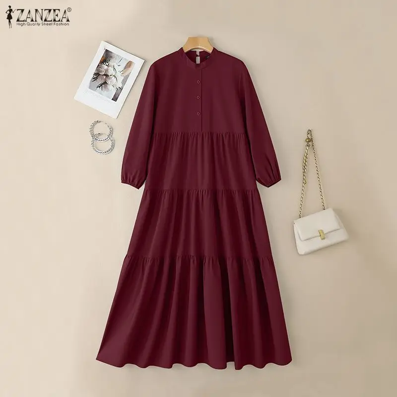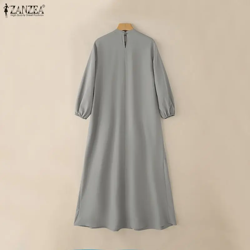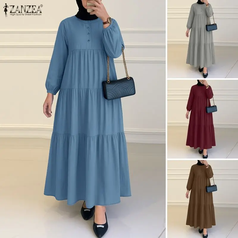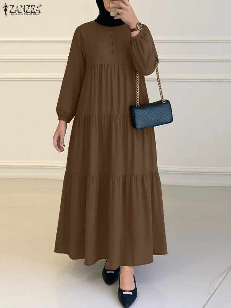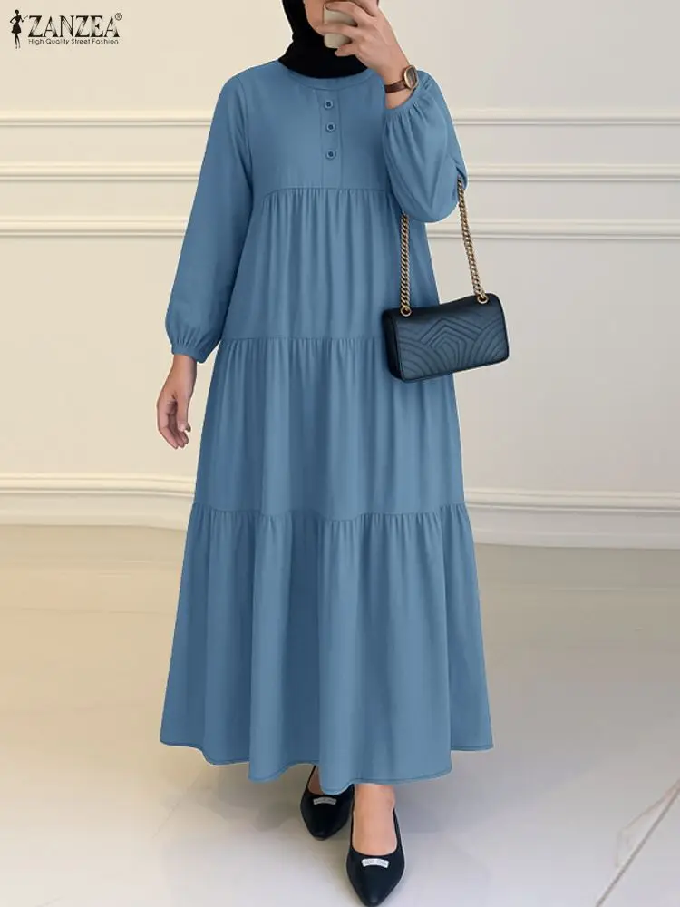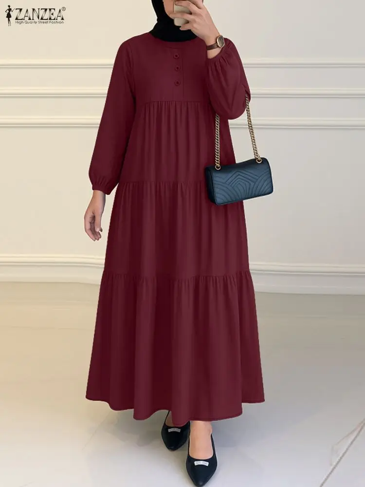 ZANZEA Women’s Autumn Dresses 2025 Elegant O Neck Long Sleeve Muslim Dress Abaya IsIamic Robe Solid Long Vestidos Dubai Sundress