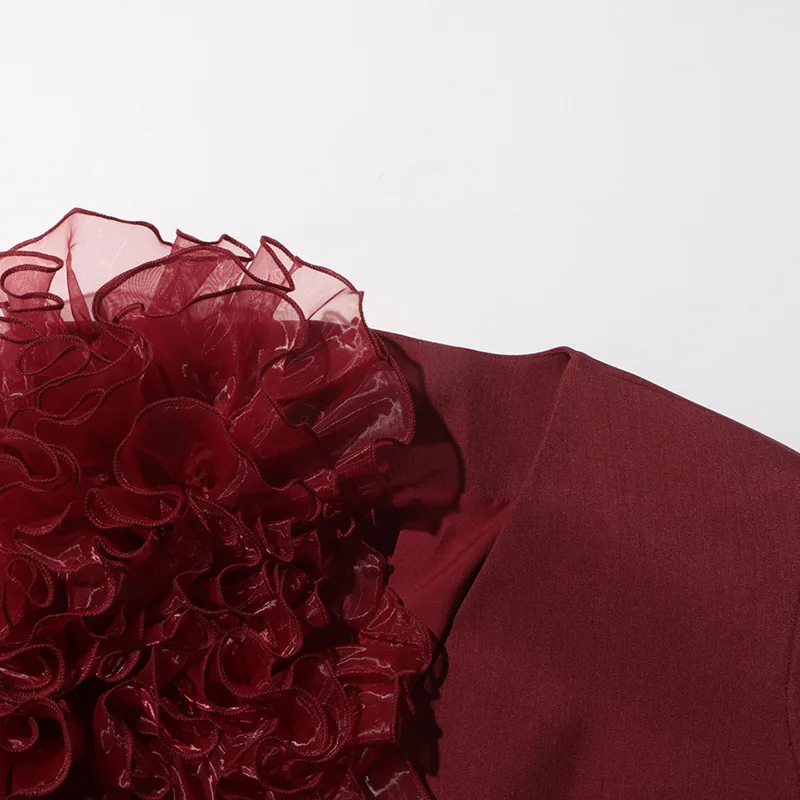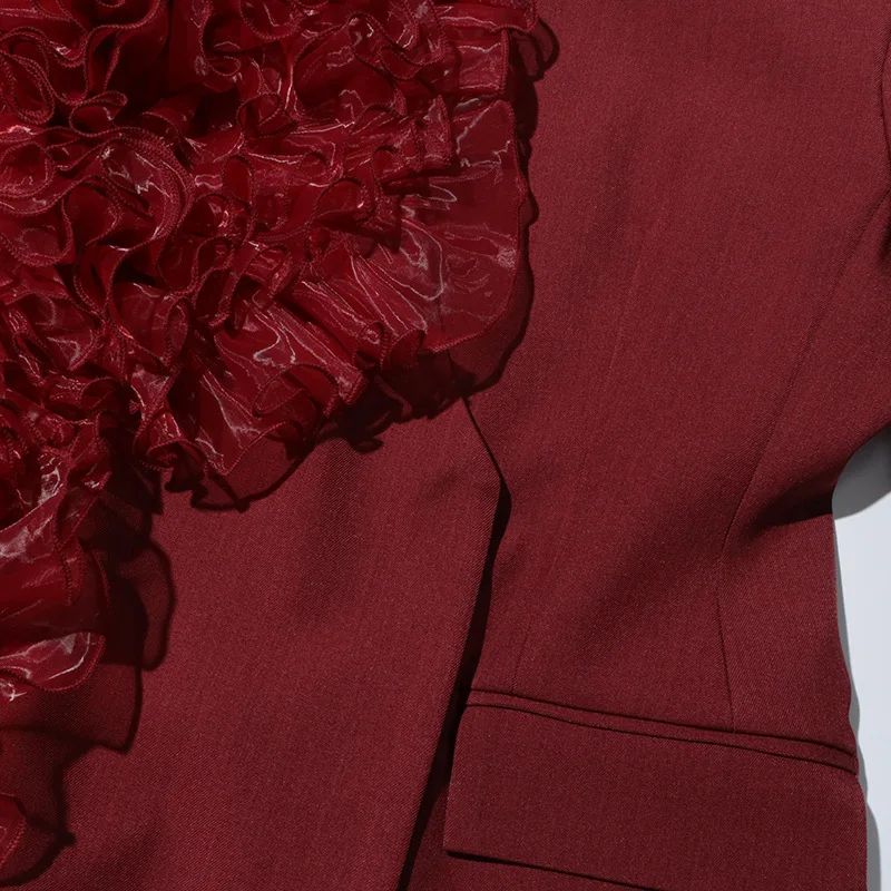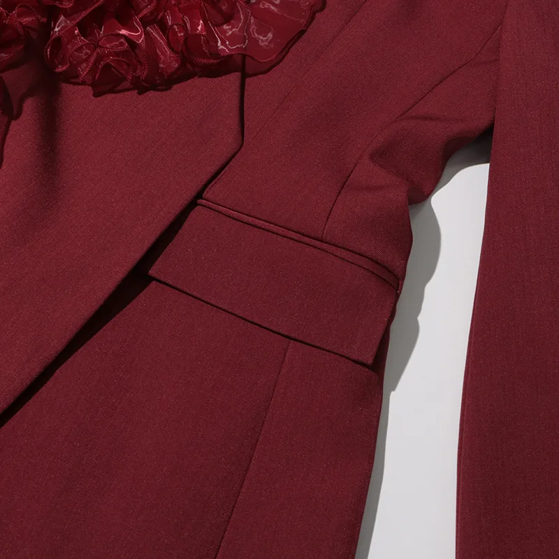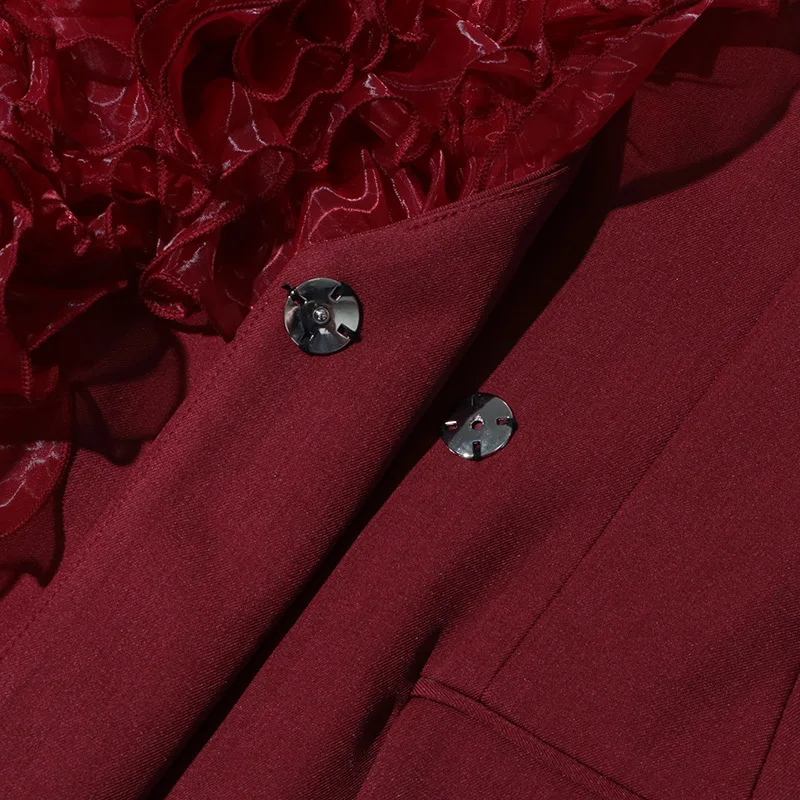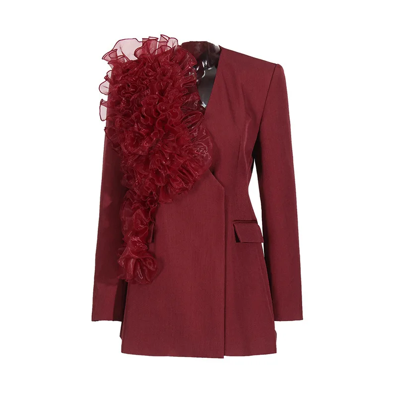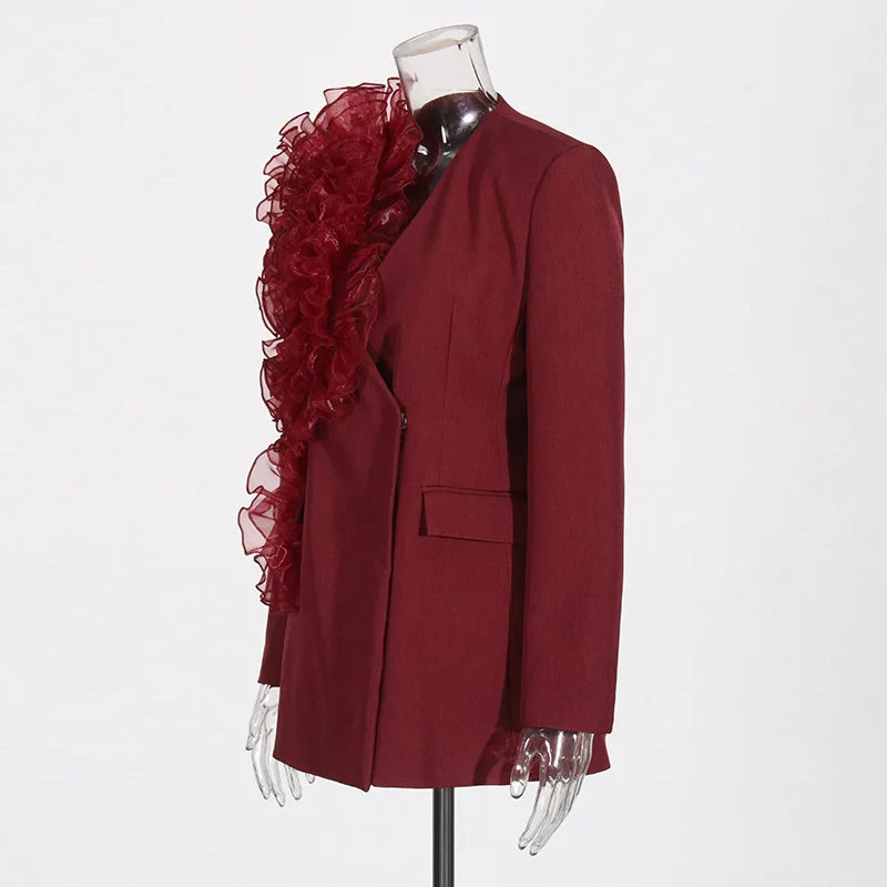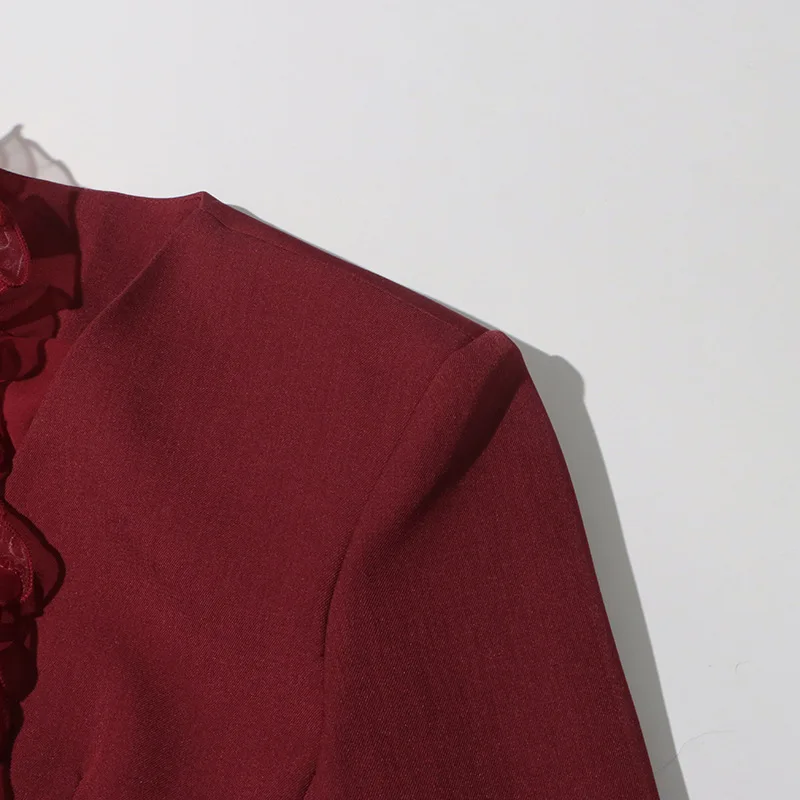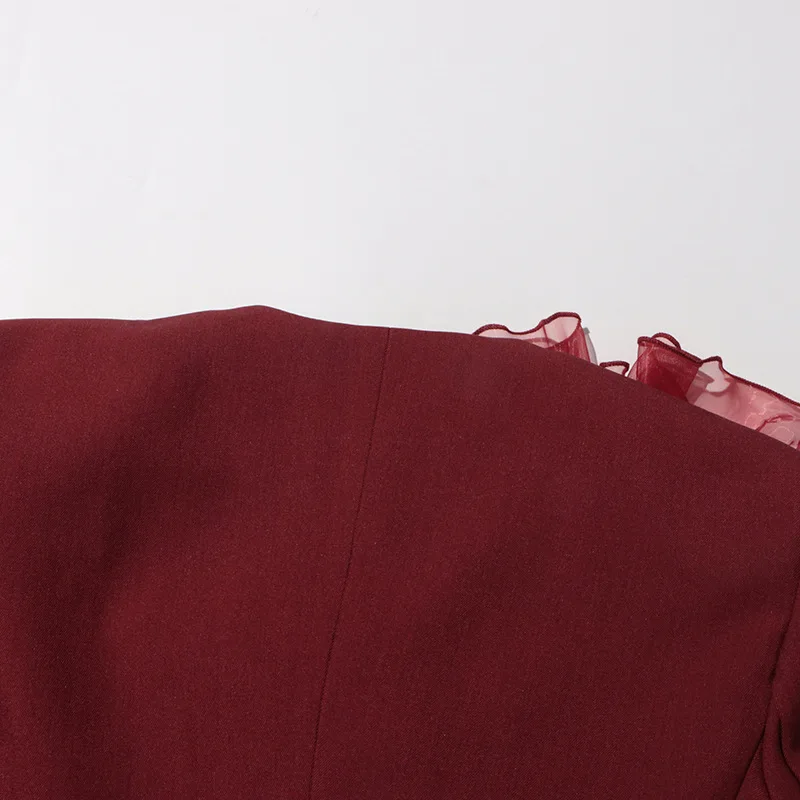 ZOCI Fashion Women’s Blazer Niche Splicing Mesh Design Angola Red Female Coats Retro Office Lady Long Sleeved 2025 Spring New