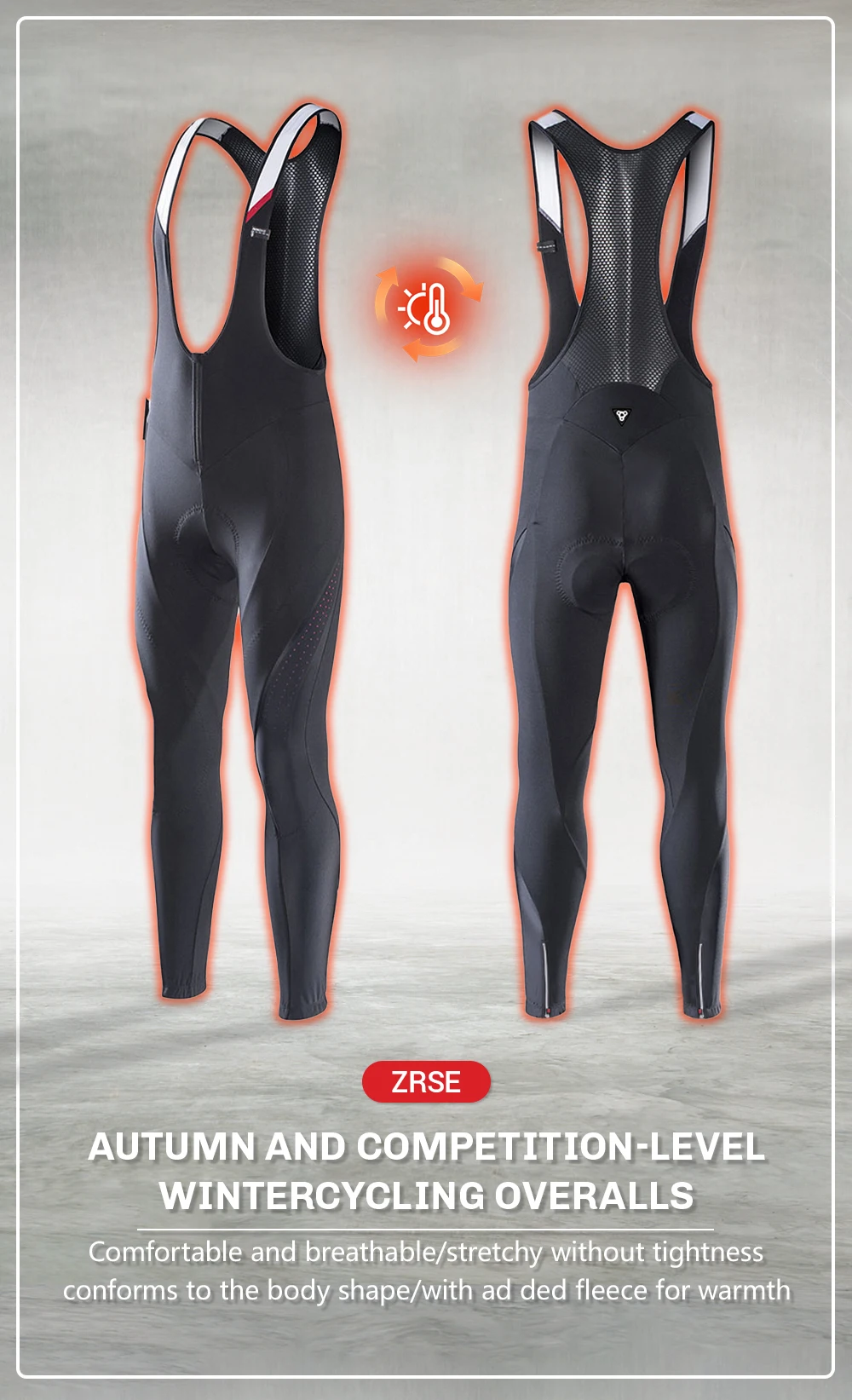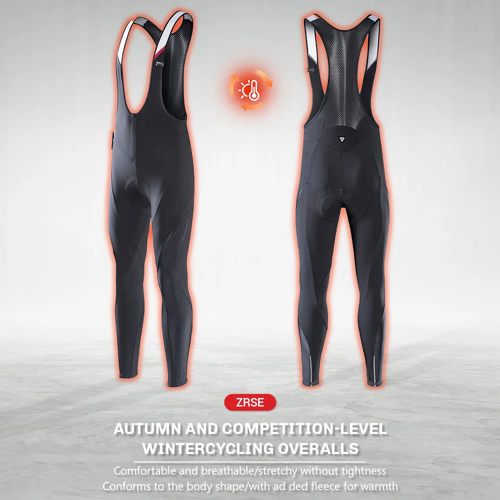 ZRSE Winter Thermal Fleece 10H Cycling Bib Pants Mountain Bike Zipper Cycling No sense restraint Tights Pro Team Padded MTB Bike