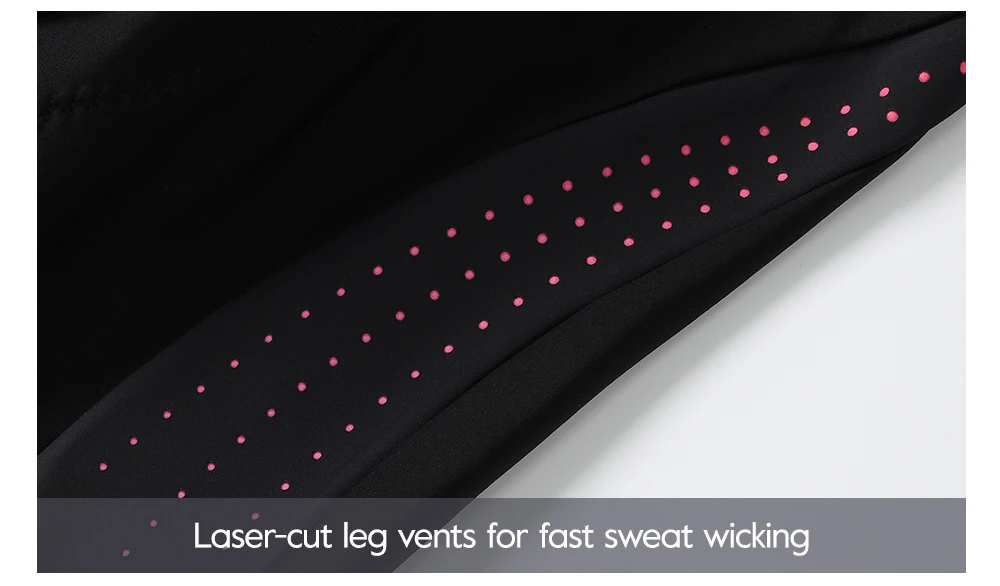 Laser-cut leg vents for fast sweat wicking