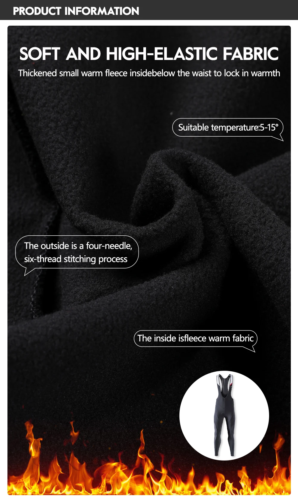 SOFT AND HIGH-ELASTIC FABRICThickened small warm fleece insidebelow the waist to lock in warmth