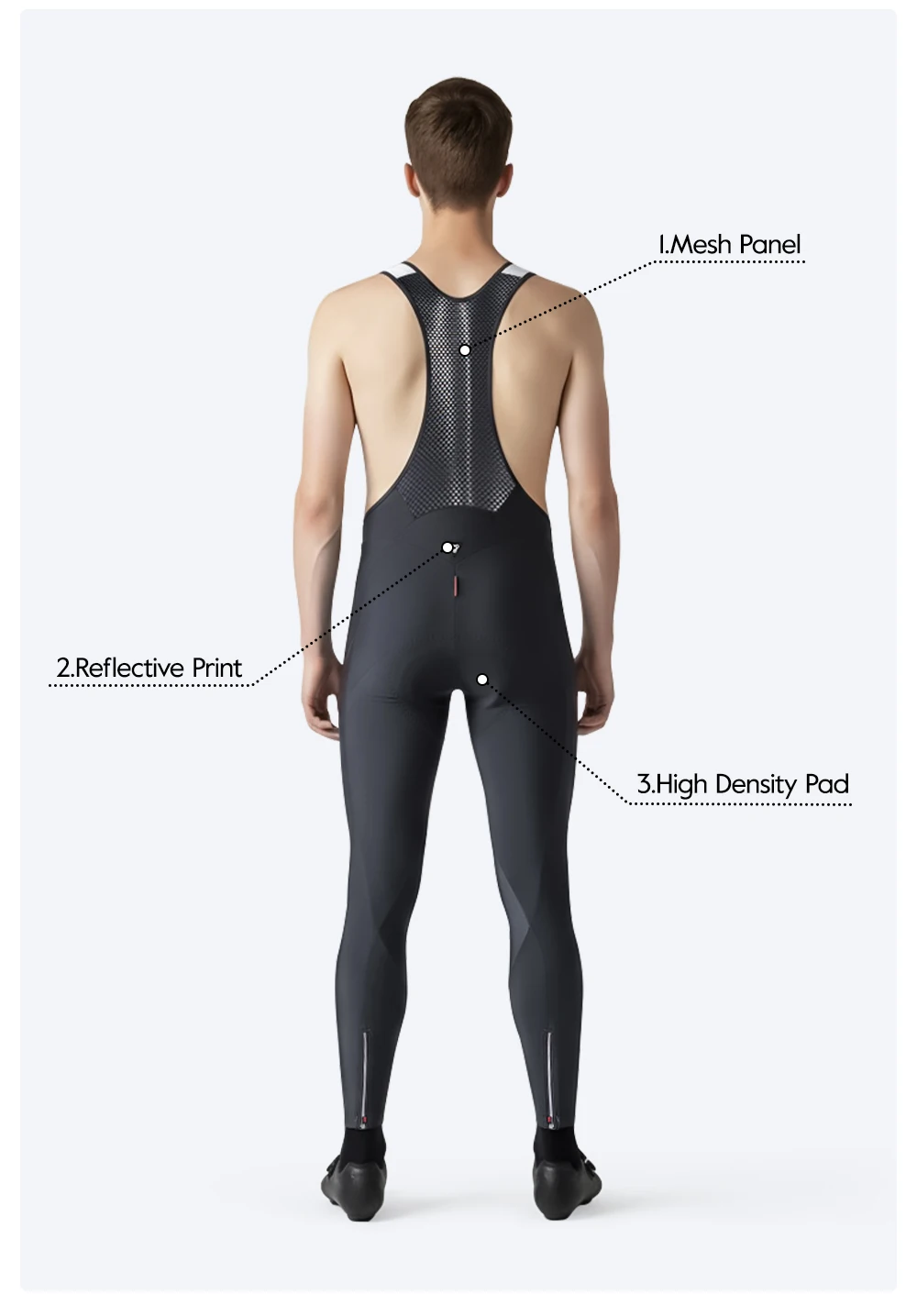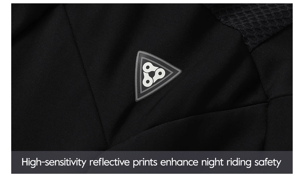 Composite Thermal windproof material+ Breathable mesh fabric,Equipped with high light-sensitive reflective material, enhance nighttime cycling safety