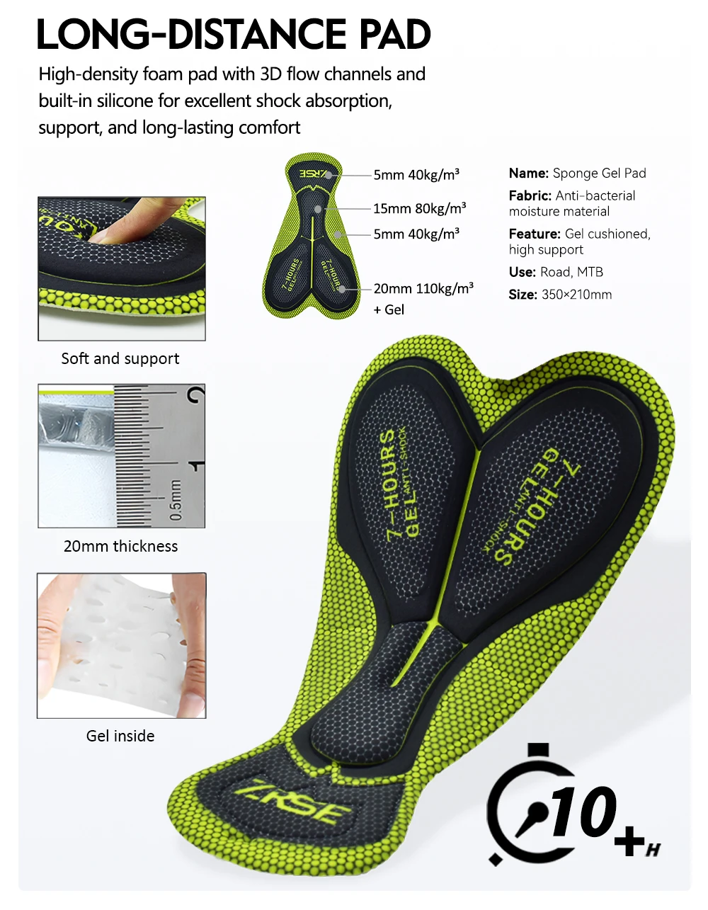 High-density foam pad with 3D flow channels andbuilt-in silicone for excellent shock absorption,support, and long-lasting comfort
