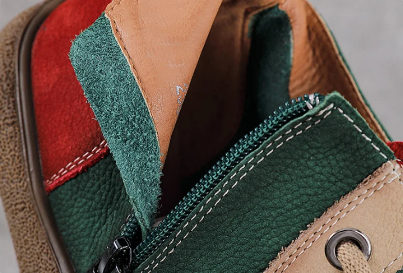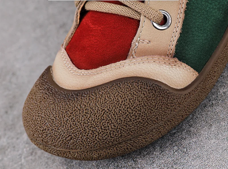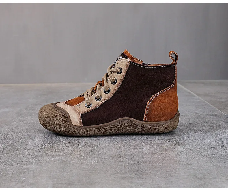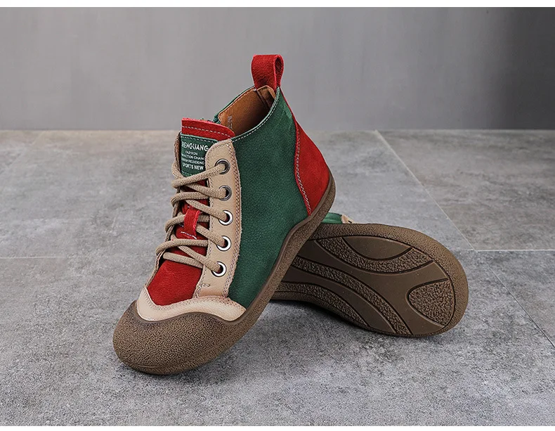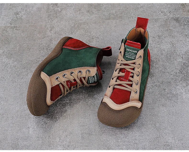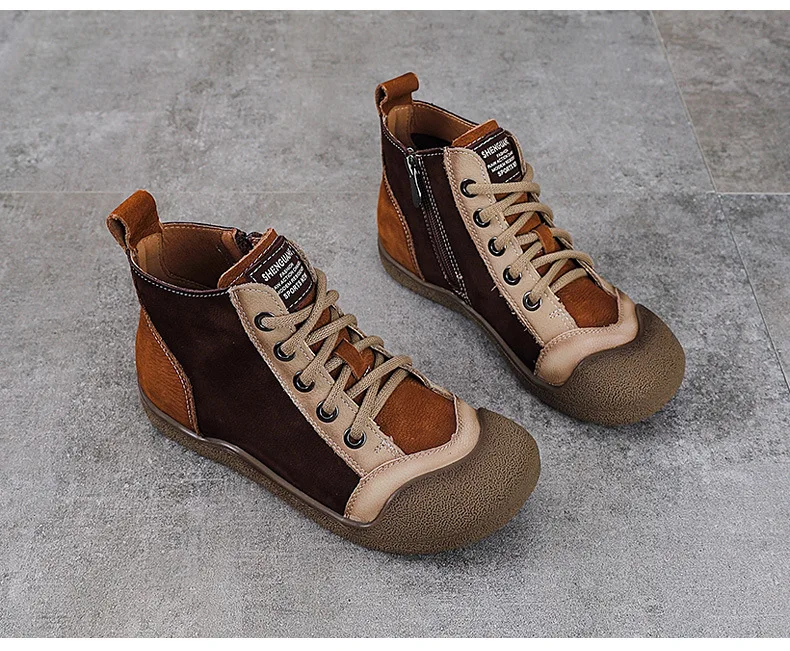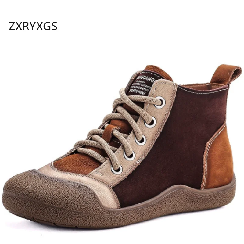 ZXRYXGS 2025 Top Layer Cowhide Spell Colors Splicing Women’s Trendy Sneakers Flat Shoes Ankle Boots Fashion Casual Sneakers Tide